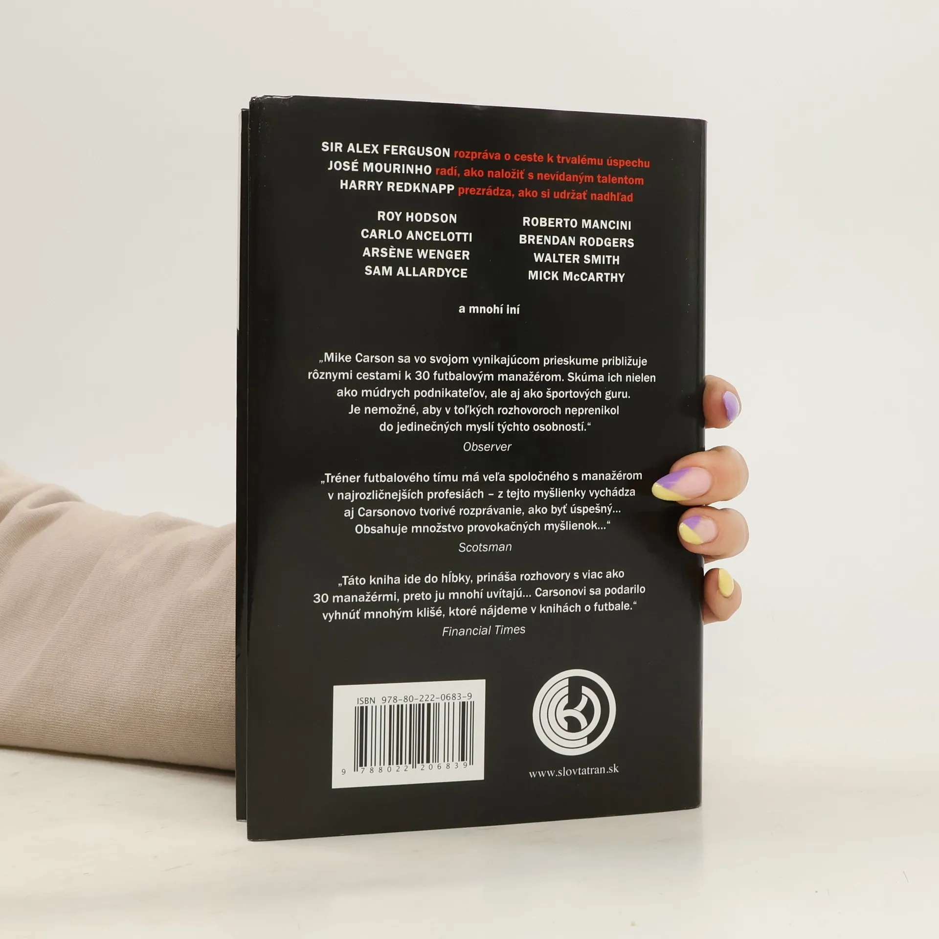 Čím si vyslúžite lojalitu hráčov? Ako si poradíte s tímom v čase krízy? Ako možno zabezpečiť tímu trvalý úspech? Ako možno viesť klub vyrovnane, s kľudom Angličana, ako sa povie, ak dennodenne čelíte obrovskému tlaku? V Manažérovi sa k nastoleným témam vyjadruje 30 najslávnejších futbalových trénerov. Tieto osobnosti musia byť znamenitými lídrami, naslovovzatými odborníkmi, pretože médiá a futbaloví priaznivci sledujú každý ich krok, hodnotia ich rozhodnutia, pozerajú im na prsty, vnímajú každé jedno slovo, sledujú, či si počínajú schopne a analyzujú ich úspechy i neúspechy. V tejto knihe nás futbaloví manažéri zoznamujú s vlastnými metódami, na príkladoch vysvetľujú všetko, čo sa počas kariéry naučili, opisujú rozhodnutia, ktoré musia robiť, a vysvetľujú, aké spôsoby vedenia tímu sú im najvlastnejšie. Manažér ponúka neoceniteľné rady nielen pre amatérskych a profesionálnych trénerov, športovcov, funkcionárov, ale aj pre vrcholových manažérov v najrozličnejších profesiách. Kniha, jediná svojho druhu, umožňuje všetkým fanúšikom bez akýchkoľvek zábran nazrieť do zákulisia prvoligového futbalového manažmentu.