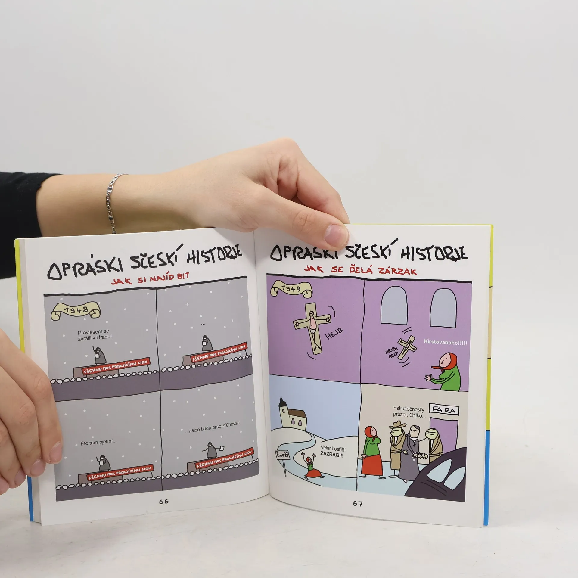Opráski sčeskí historje jsou krátké komiksy (stripy) postavené na reálném historickém základu, který někdy doplňuje vykonstruovaná pointa. Správná gramatika v nich jde stranou, velký prostor naopak dostává specifický a často nekorektní humor. Z těchto důvodů mají jak mnoho fanoušků, tak i odpůrců. Po prvním a druhém díle vám přinášíme díl třetí s novými a ještě lepšími opráski. Opět je doplňují medajlonky velkých postav našich dějin. Dovíte se například, že velikán vědy a hrdina školních kabinetů Jan Amos Komenský, neměl rád děti, ale také to, že knihy Bohumila Hrabala jsou hned po kocovině tím nejlepším, co české pivo dalo světu.