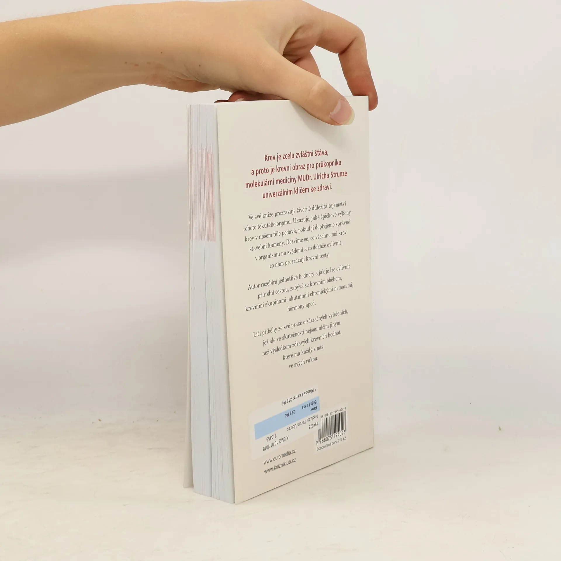 Populárně naučná knížka renomovaného autora a odborníka molekulární medicíny MUDr Ulricha Strunze, který na základě své dlouholeté praxe odhaluje tajemství krve, životně důležité tělesné látky, která je klíčem k našemu zdraví. Dozvíme se: Co všechno má krev v našem organismu na svědomí a co dokáže ovlivnit, co nám prozrazují krevní testy, rozebírá jednotlivé hodnoty a jak je lze ovlivnit přírodní cestou, zabývá se krevním oběhem, krevními skupinami, akutními i chronickými nemocemi, hormony apod.