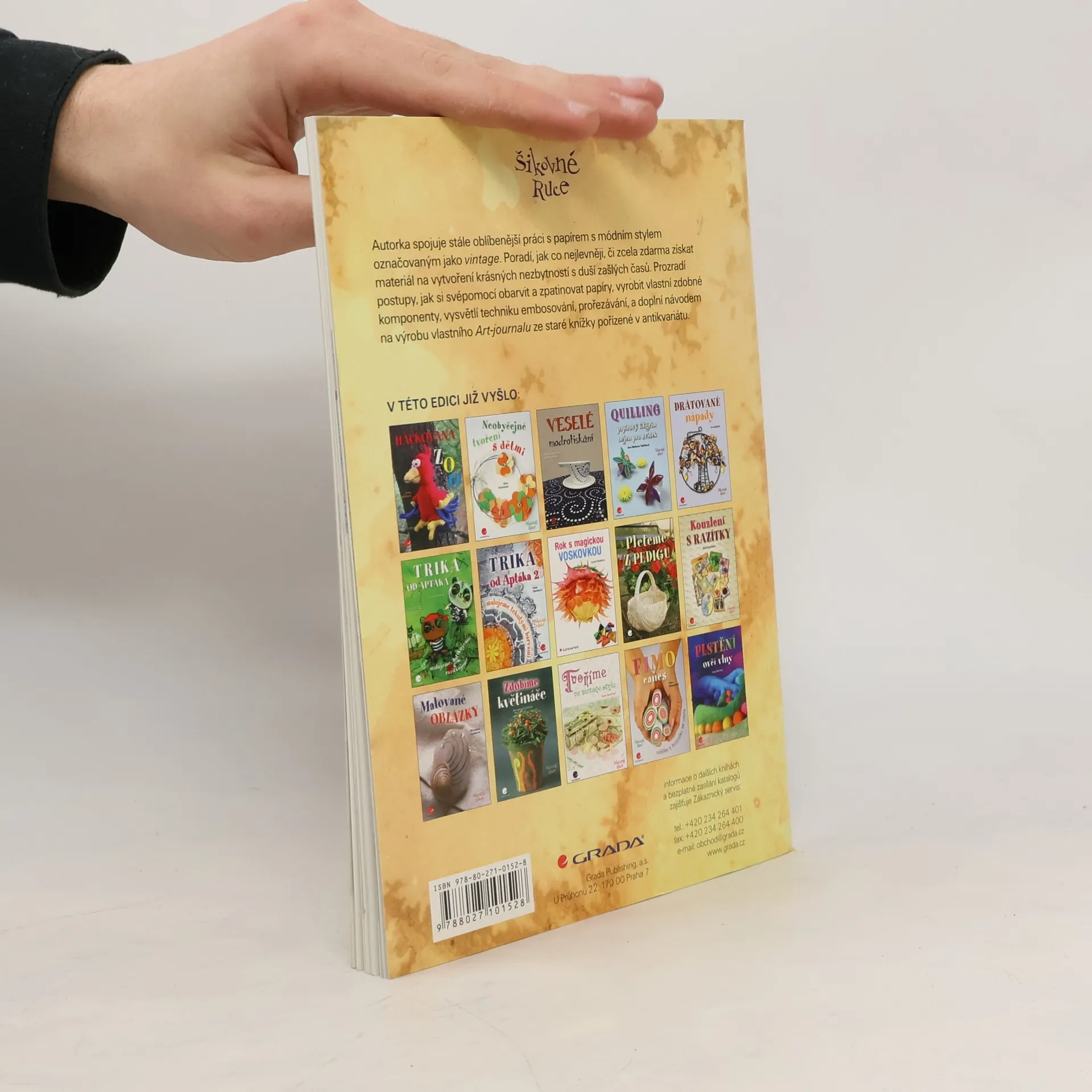 Autorka spojuje stále oblíbenější práci s papírem s módním stylem označovaným jako „vintage“. Poradí, jak co nejlevněji, či zcela zdarma získat materiál na vytvoření krásných nezbytností s duší zašlých časů. Prozradí postupy, jak si svépomocí obarvit a zpatinovat papíry, vyrobit vlastní zdobné komponenty, vysvětlí techniku embosování, prořezávání, a doplní návodem na výrobu vlastního „Art-journalu“ ze staré knížky pořízené v antikvariátu.