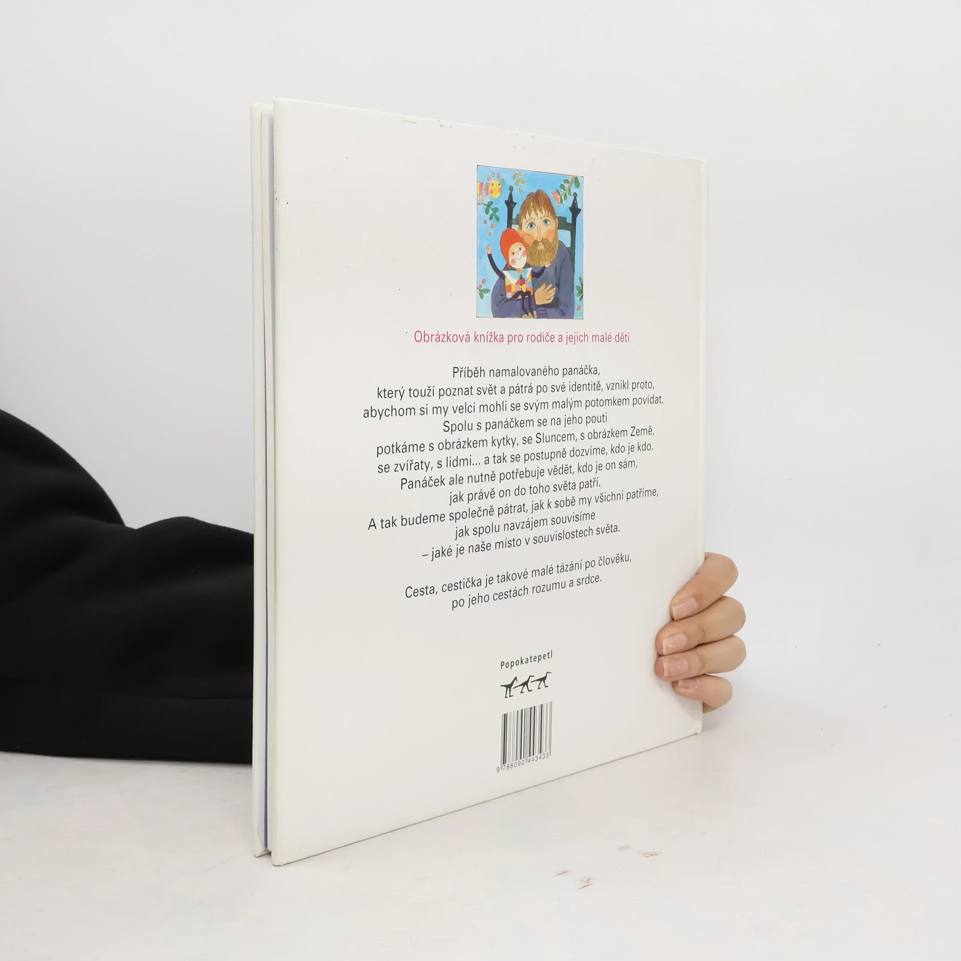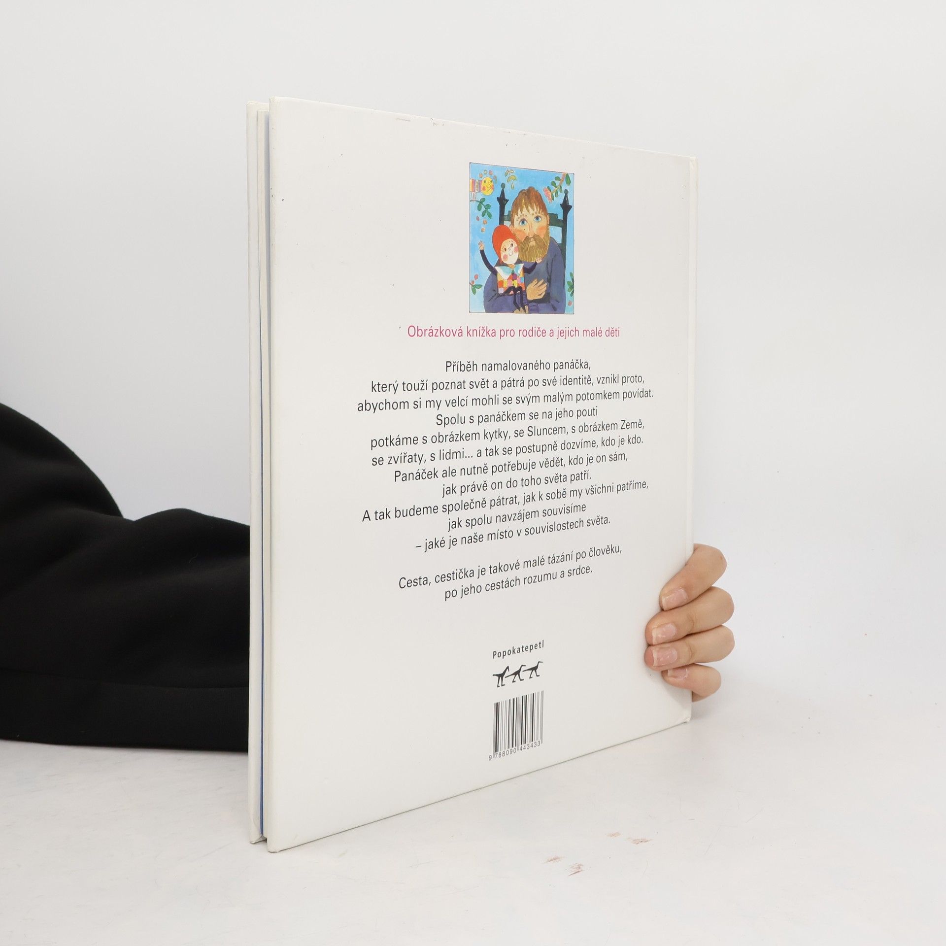 Příběh namalovaného panáčka, který touží poznat svět a pátrá po své identitě, vznikl proto, abychom si my velcí mohli se svým malým potomkem povídat. Spolu s panáčkem se na jeho pouti potkáme s obrázkem kytky, se Sluncem, s obrázkem Země, se zvířaty, s lidmi... a tak se postupně dozvíme, kdo je kdo. Panáček ale nutně potřebuje vědět, kdo je on sám, jak právě on do toho světa patří. A tak budeme společně pátrat, jak k sobě my všichni patříme, jak spolu navzájem souvisíme — jaké je naše místo v souvislostech světa. Cesta, cestička je takové malé tázání po člověku, po jeho cestách rozumu a srdce. Publikace se skládá ze dvou do sebe vložených knih o rozměrech 285x255 mm a 205x200 mm.