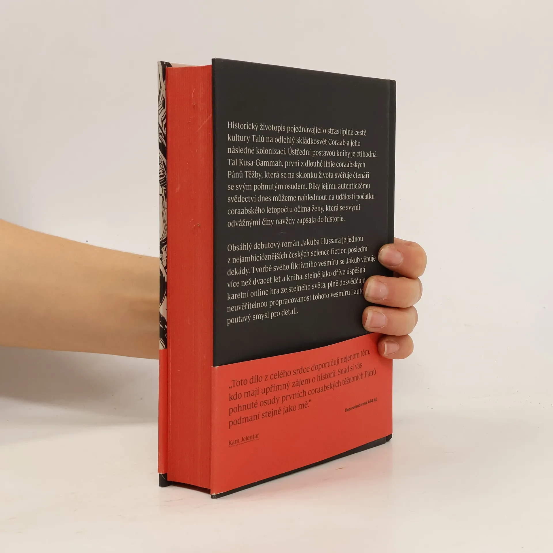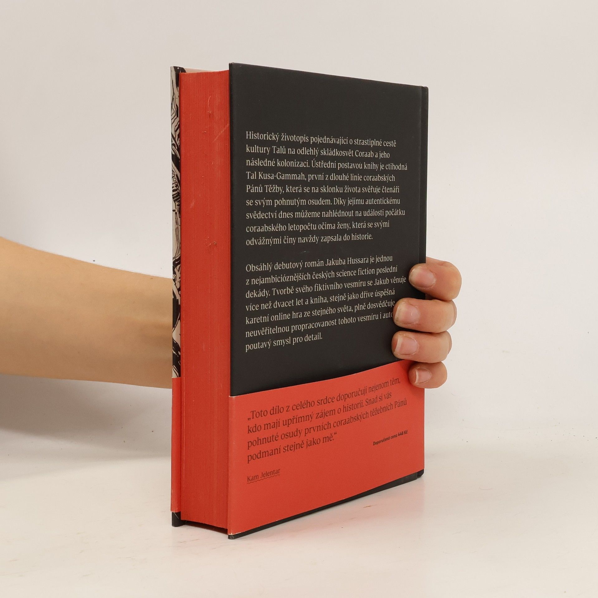 Obsáhlý debutový román Jakuba Hussara je jednou z nejambicióznějších českých science fiction poslední dekády. Tvorbě svého fiktivního vesmíru se Jakub věnuje více než dvacet let a kniha, stejně jako dříve úspěšná karetní online hra ze stejného světa, plně dosvědčuje neuvěřitelnou propracovanost tohoto vesmíru i autorův poutavý smysl pro detail. Historický životopis pojednávající o strastiplné cestě kultury Talů na odlehlý skládkosvět Coraab a jeho následné kolonizaci. Ústřední postavou knihy je ctihodná Tal Kusa-Gammah, první z dlouhé linie coraabských Pánů Těžby, která se na sklonku života svěřuje čtenáři se svým pohnutým osudem. Díky jejímu autentickému svědectví dnes můžeme nahlédnout na události počátku coraabského letopočtu očima ženy, která se svými odvážnými činy navždy zapsala do historie.
