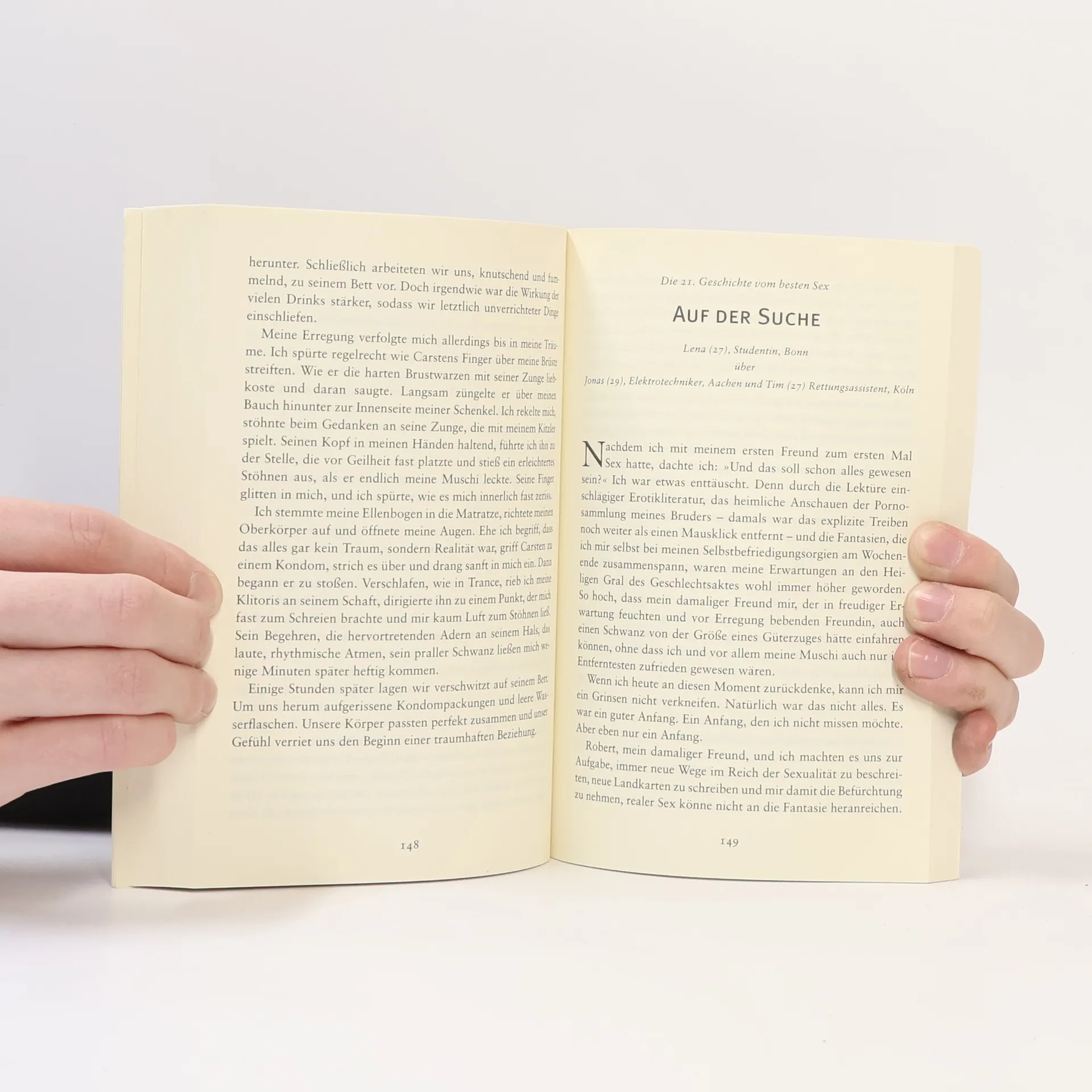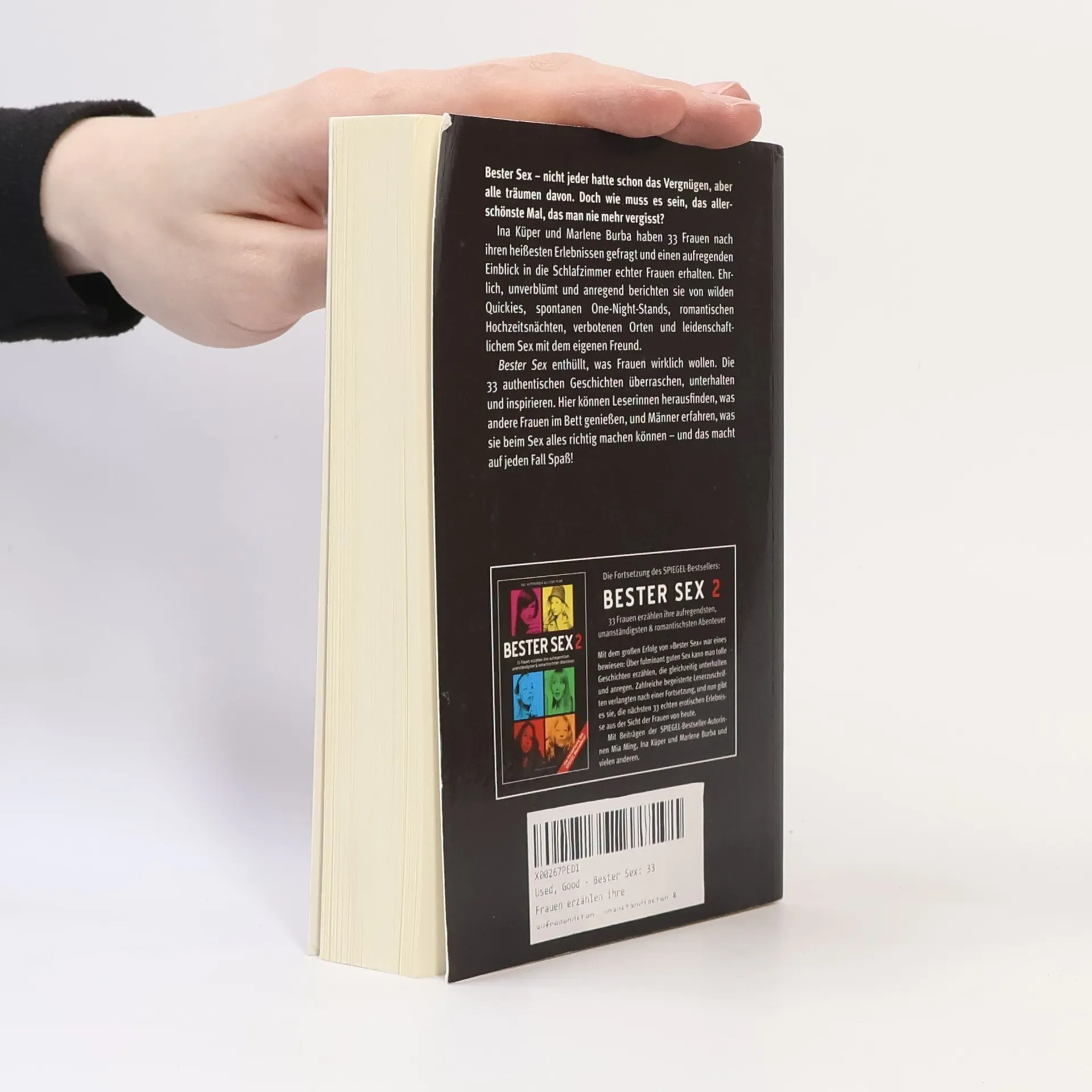 Die Autorinnen haben sich umgehört und 33 Geschichten über fantastischen, lustvollen und tabulosen Sex gesammelt. In dem Buch erzählen Frauen von genüsslichen Rachemomenten auf der Motorhaube, außergewöhnlichen Unterwasserspielen mit dem Tauchlehrer in der Karibik oder von der neuen Nachbarin, die unerwartete Gefühle weckt. Die beiden Autorinnen sind in 33 Geschichten den geheimen Gelüsten der Frauen auf der Spur und gewähren neugierigen Lesern einen Einblick in weibliche Schlafzimmer. Diese authentischen Bettgeschichten eignen sich sowohl zum stillen Genießen allein als auch zum Vorlesen im kleinen und großen Kreis.