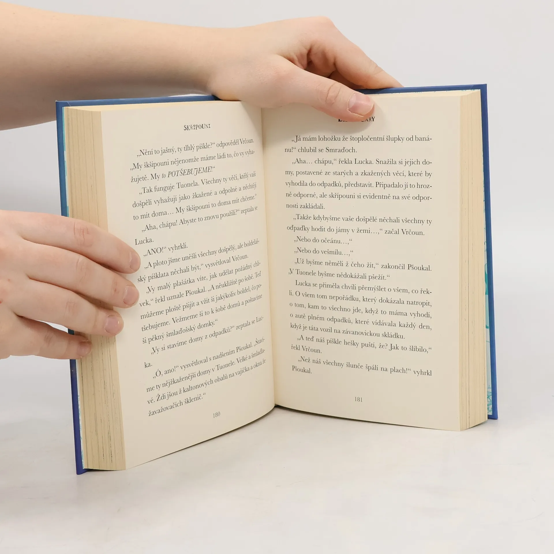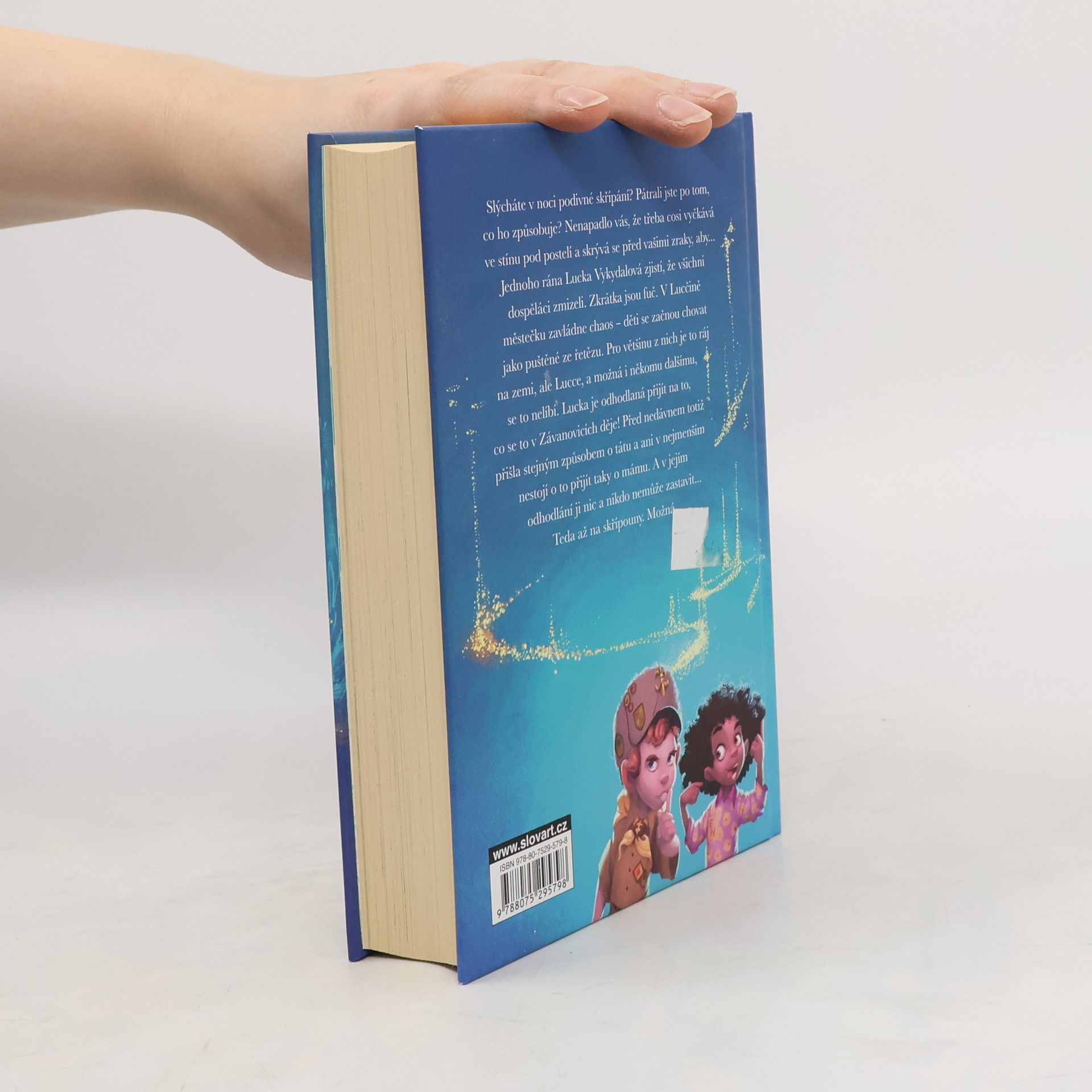 Slýcháte v noci podivné skřípání? Pátrali jste po tom, co ho způsobuje? Nenapadlo vás, že třeba cosi vyčkává ve stínu pod postelí a skrývá se před vašimi zraky, aby… Jednoho rána Lucka Vykydalová zjistí, že všichni dospěláci zmizeli. Zkrátka jsou fuč. V Lucčině městečku zavládne chaos: děti se začnou chovat jako puštěné ze řetězu. Pro většinu z nich je to ráj na zemi, ale Lucce, a možná i někomu dalšímu, se to nelíbí. Lucka je odhodlaná přijít na to, co se to v Závanovicích děje! Před nedávnem totiž přišla stejným způsobem o tátu a ani v nejmenším nestojí o to přijít taky o mámu. A v jejím odhodlání ji nic a nikdo nemůže zastavit... teda, až na skřípouny. Možná…