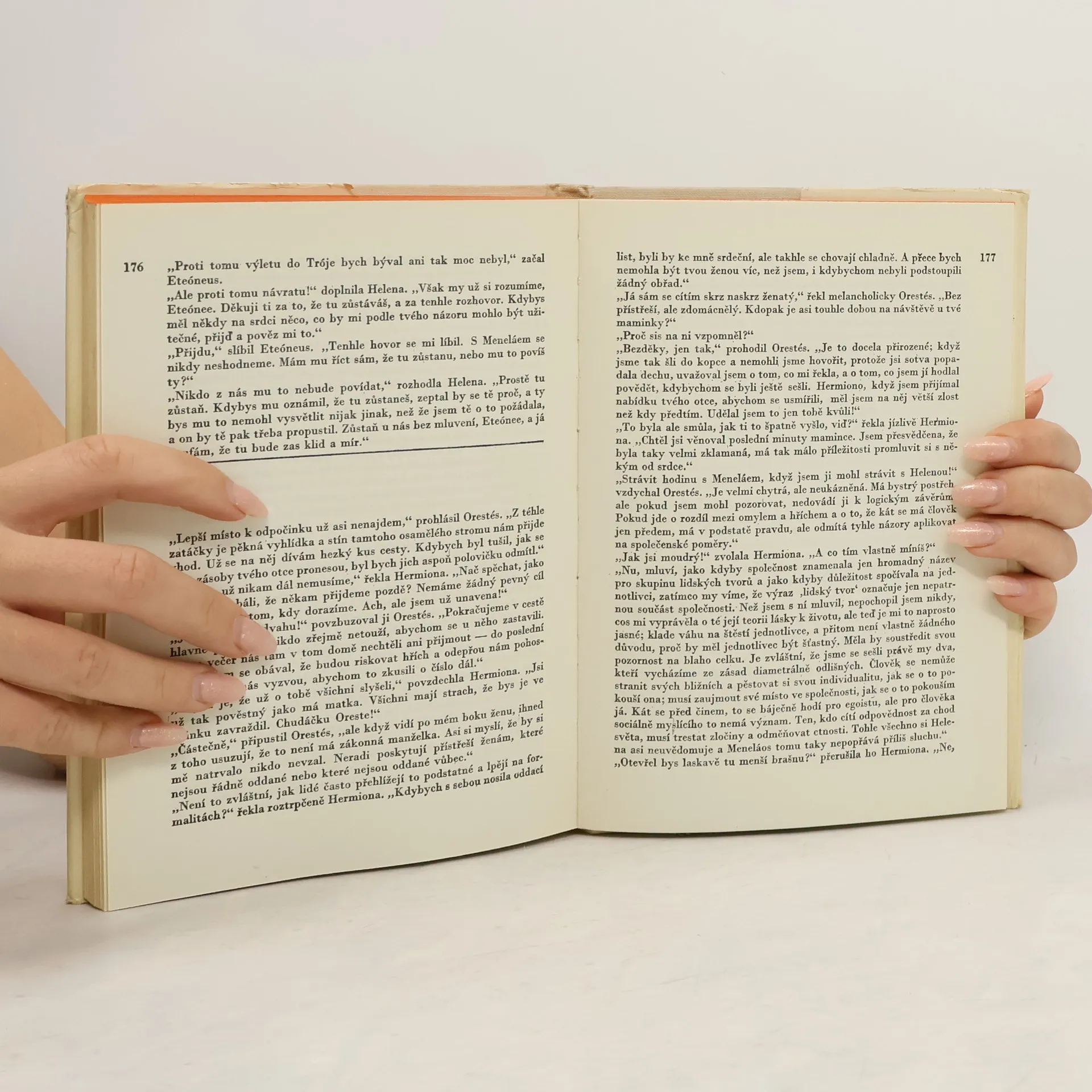 Humor je vzácné koření a autoři, kteří ho umějí rozdávat, by měli patřit k nejváženějším. Tím odvážnější je pak záměr vystavět humorný příběh na skrumáži vražd, které poskytly látku k celé řadě proslulých řeckých tragédií. Trojská válka vypukla, jak známo, protože Paris unesl do Tróje Helenu, manželku spartského krále Meneláa. Zuřila deset let, na obou stranách padlo mnoho hrdinů, a když bylo po všem, Meneláos si svou ženu odvezl zpátky do Sparty a začali dávat dohromady porouchanou domácnost. Nebylo to lehké, neboť v příbuzenstvu se neustále vraždilo, dceruška Hermiona se rodičům poněkud vymkla z ruky a mezi Helenou a Meneláem to neklapalo – což není koneckonců divu. Americký spisovatel John Erskine nehodlal znovu, už po tolikáté, interpretovat tento neblahý úsek řeckých dějin. Šlo mu spíš o to, postavit proti sobě dvě životní filozofie. Jedna – reprezentovaná bezradným a vždy znovu trapným Meneláem – se pokouší vtěsnat život do zkostnatělých konvencí, druhá – Helenina – je naplněna láskou k životu. Dvě neslučitelné koncepce, kdysi stejně jako dnes. A zároveň dva báječné prototypy, mužský a ženský. Knížka plná jemné ironie, duchaplných dialogů, bystrých filozofických postřehů. Nepatetická oslava života a lásky.