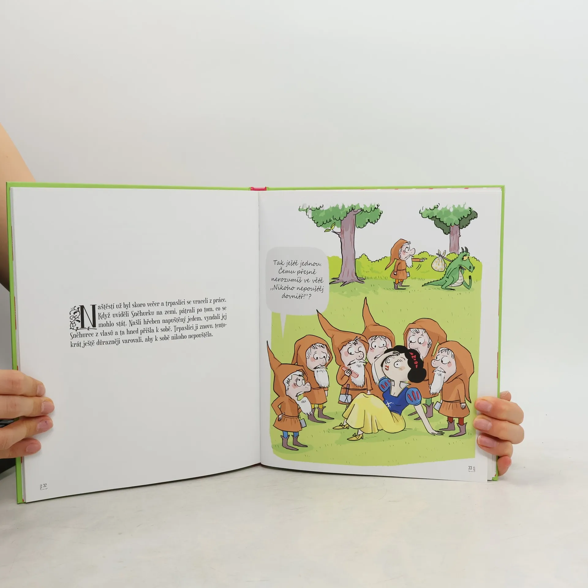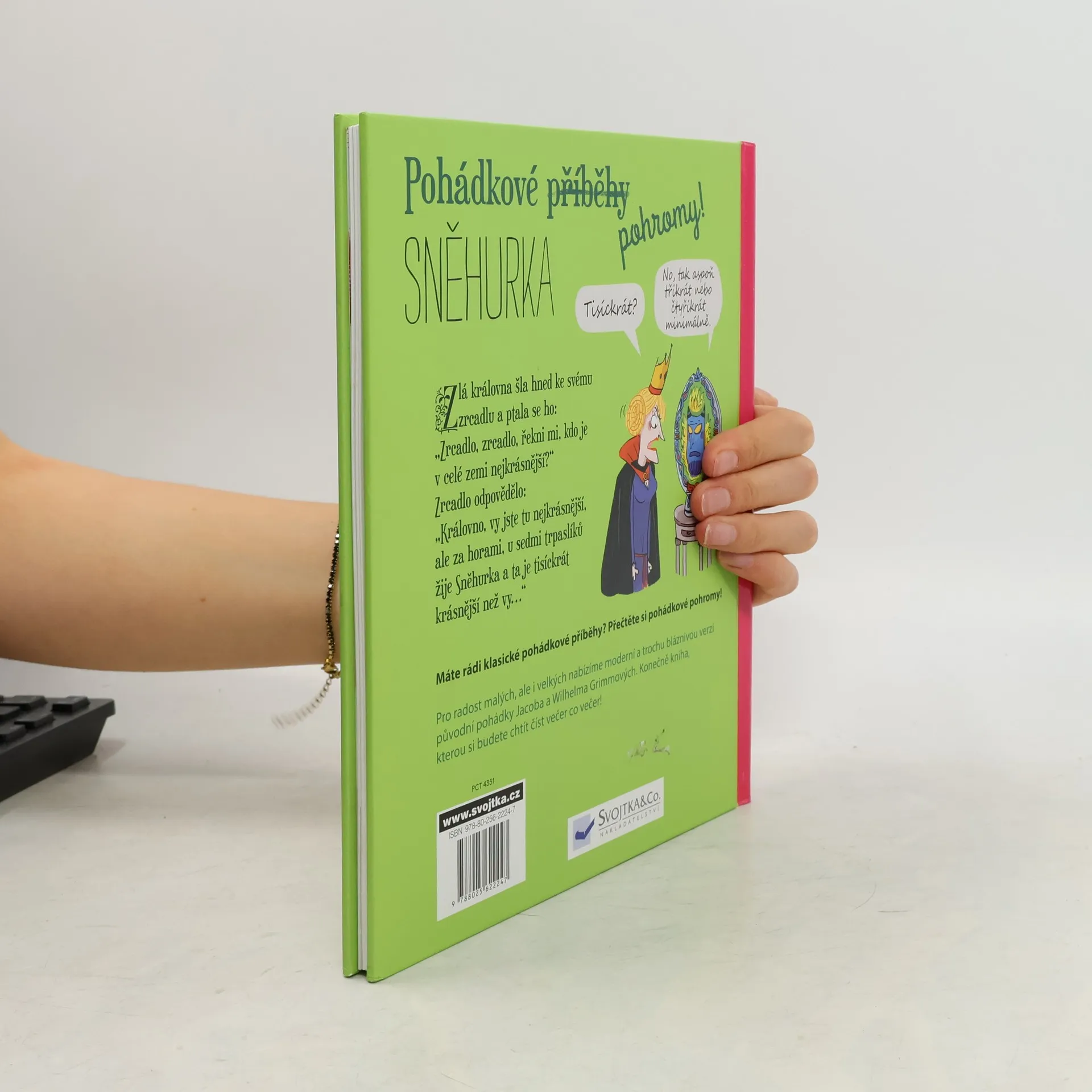Klasická pohádka, netradiční ilustrace a komentáře hlavních hrdinů, které rozesmějí vás i vaše děti. Pohádková pohroma se valí! Zlá macecha, krásná Sněhurka, sedm trpaslíků, ten příběh známe všichni. Jenomže kouzelné zrcadlo si občas neodpustí nějakou jízlivost a trpaslíci zase musí Sněhurce, která pomaleji chápe, důrazně domlouvat, aby nikomu neotevírala… Říkáte si, co je to za pohádku? To je pohádková pohroma! I hrdinové z klasických pohádek chtějí držet krok s dobou. Přečtěte si známou pohádku s vtipnými ilustracemi i komentáři, které pobaví vás i vaše děti. Konečně kniha, kterou si budete chtít číst každý večer!