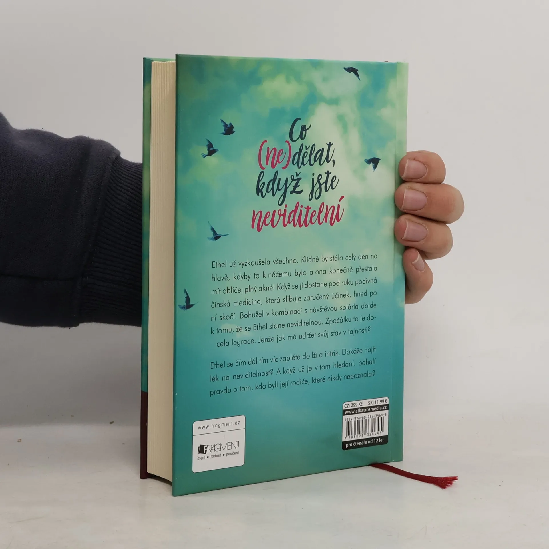 Jak můžeš vědět, kdo jsi, když se ani nevidíš? Tahle neviditelná holka si získá vaše srdce! Ethel už vyzkoušela všechno. Klidně by stála celý den na hlavě, kdyby to k něčemu bylo, a ona konečně přestala mít obličej plný akné! Když se jí dostane pod ruku podivná čínská medicína, která slibuje zaručený účinek, hned po ní skočí. Bohužel v kombinaci s návštěvou solária dojde k tomu, že se Ethel stane neviditelnou. Zpočátku to je docela legrace. Jenže jak má udržet svůj stav v tajnosti? Ethel se čím dál tím víc zaplétá do lží a intrik. Dokáže najít lék na neviditelnost? A když už je v tom hledání: odhalí pravdu o tom, kdo byli její rodiče, které nikdy nepoznala?