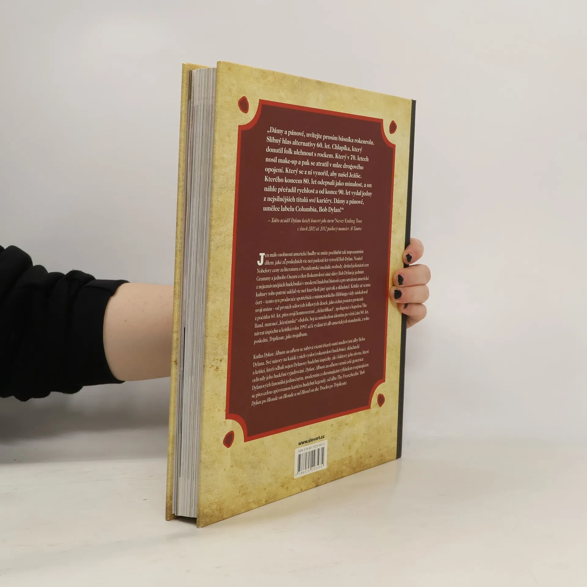 Bob Dylan celosvětově prodal přes sto milionů alb. Z jeho šestatřiceti studiových LP získalo jedenáct platinu a dvanáct zlato. Kniha Dylan: Album za albem se retrospektivně zabývá celou kariérou této hudební legendy a zodpovídá celou řadu dotazů tím, že se detailně zaměřuje na všech třicet šest Dylanových oficiálních studiových nahrávek. O každém albu diskutují osobnosti hudebního průmyslu s moderátorem Jonem Breamem, veteránem mezi kritiky z novin Minneapolis Star Tribune, jež vycházejí v Dylanově rodném městě. Kniha obsahuje informace o jednotlivých nahrávkách a studiových hudebnících a nabízí kontext a perspektivu v otázkách Dylanova života, koncertů a kariéry. Vše doplňují obaly alb, dobové fotografie a suvenýry a také snímky z vystoupení a momentky ze života.
