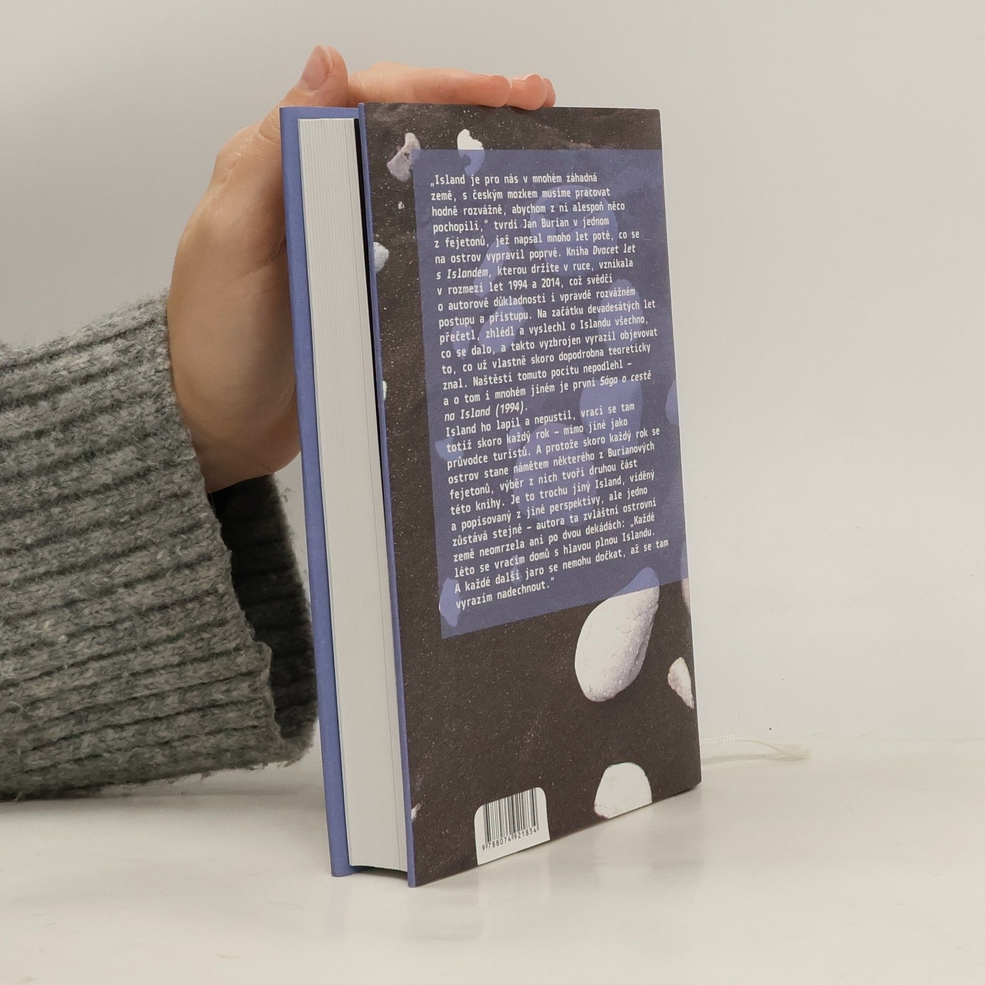 Island je pro nás v mnohém záhadná země, s českým mozkem musíme pracovat hodně rozvážně, abychom z ní alespoň něco pochopili,“ tvrdí Jan Burian v jednom z fejetonů, jež napsal mnoho let poté, co se na ostrov vypravil poprvé. Kniha Dvacet let s Islandem vznikala v rozmezí let 1994 a 2014, což svědčí o autorově důkladnosti i vpravdě rozvážném postupu a přístupu. Na začátku devadesátých let přečetl, zhlédl a vyslechl o Islandu všechno, co se dalo, a takto vyzbrojen vyrazil objevovat to, co už vlastně skoro dopodrobna teoreticky znal. Naštěstí tomuto pocitu nepodlehl - a o tom i mnohém jiném je první Sága o cestě na Island (1994). Island ho lapil a nepustil, vrací se tam totiž skoro každý rok - mimo jiné jako průvodce turistů. A protože skoro každý rok se ostrov stane námětem některého z Burianových fejetonů, výběr z nich tvoří druhou část této knihy. Je to trochu jiný Island, viděný a popisovaný z jiné perspektivy, ale jedno zůstává stejné - autora ta zvláštní ostrovní země neomrzela ani po dvou dekádách: „Každé léto se vracím domů s hlavou plnou Islandu. A každé další jaro se nemohu dočkat, až se tam vyrazím nadechnout.“