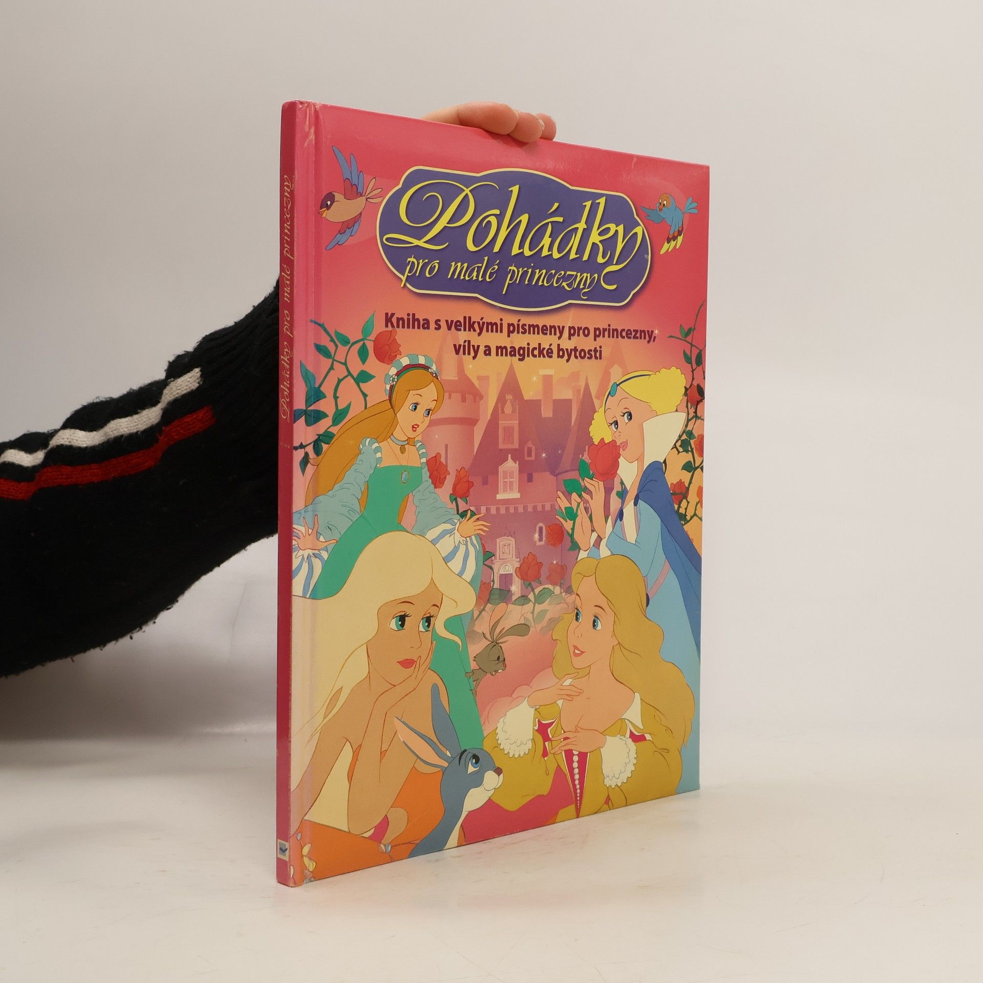 Kniha s velkými písmenky pro princezny, víly a magické bytosti; sedm klasických pohádek s nádhernými barevnými ilustracemi (Popelka; Kozlíček; Sněhurka; Kráska a zvíře; Princezna na hrášku; Malá mořská víla; Šípková Růženka)