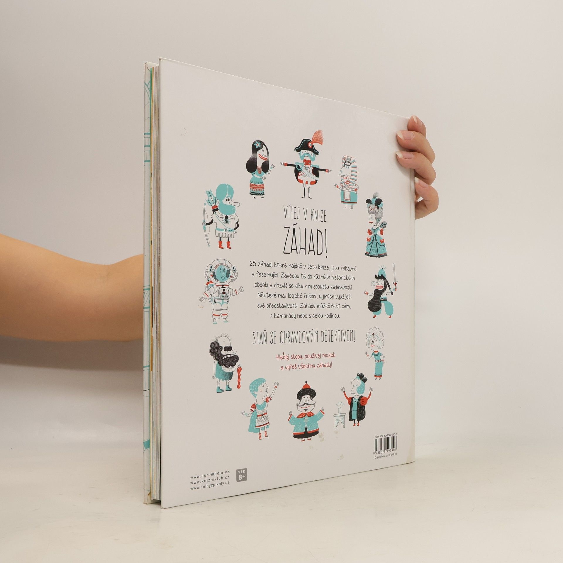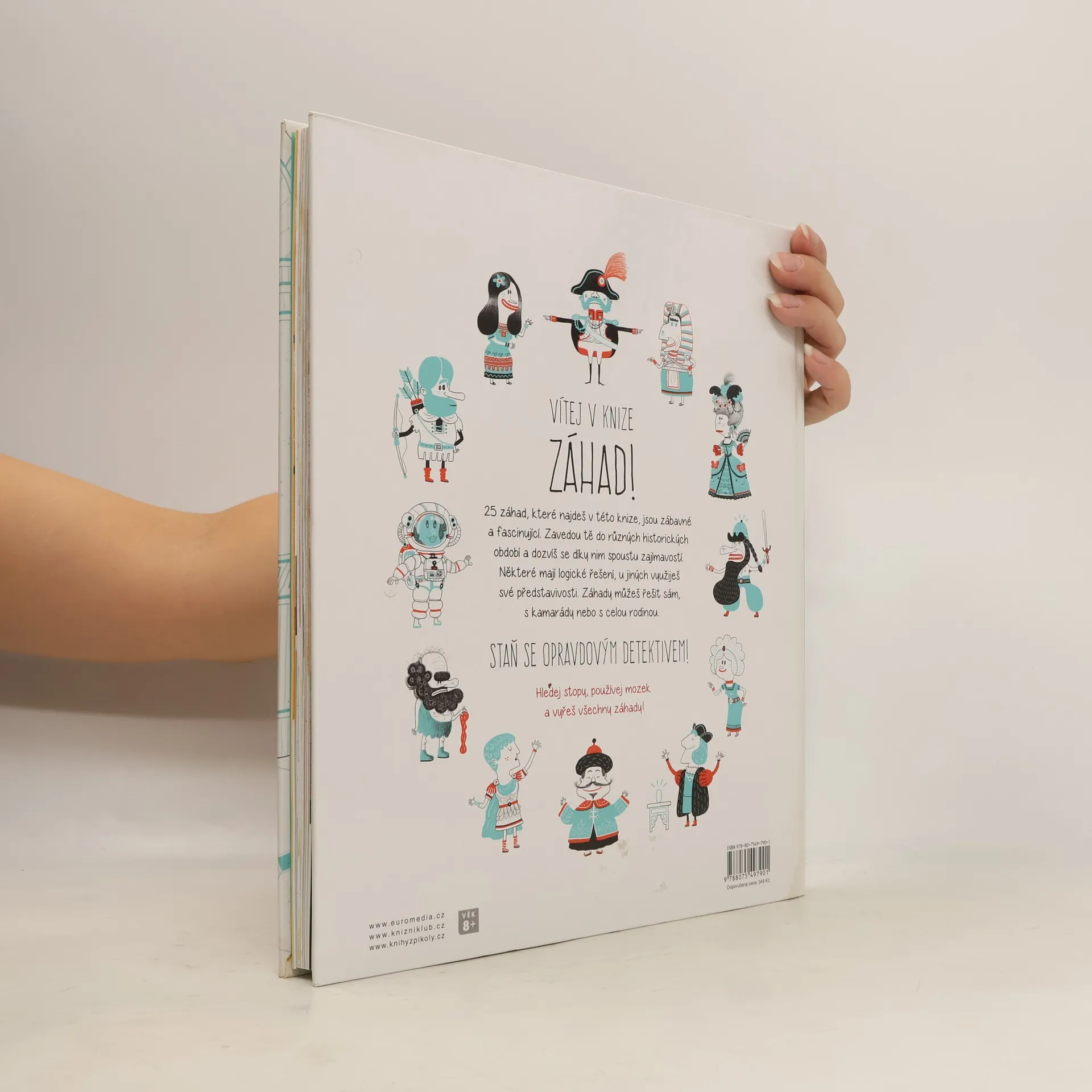Vítej v knize záhad! Přijdeš na kloub 25 tajuplným záhadám z oblasti historie? Některé mají logické řešení, u jiných využiješ své představivosti. A hlavně – hledej v zábavných obrázcích, a stopu máš nadosah. Záhady můžeš řešit sám, s kamarády nebo s celou rodinou. Staň se opravdovým detektivem! Hledej stopy, používej mozek a vyřeš všechny záhady. Věnováno dětem od 8 let a jejich rodičům, kteří mají chuť přicházet na kloub záhadám.