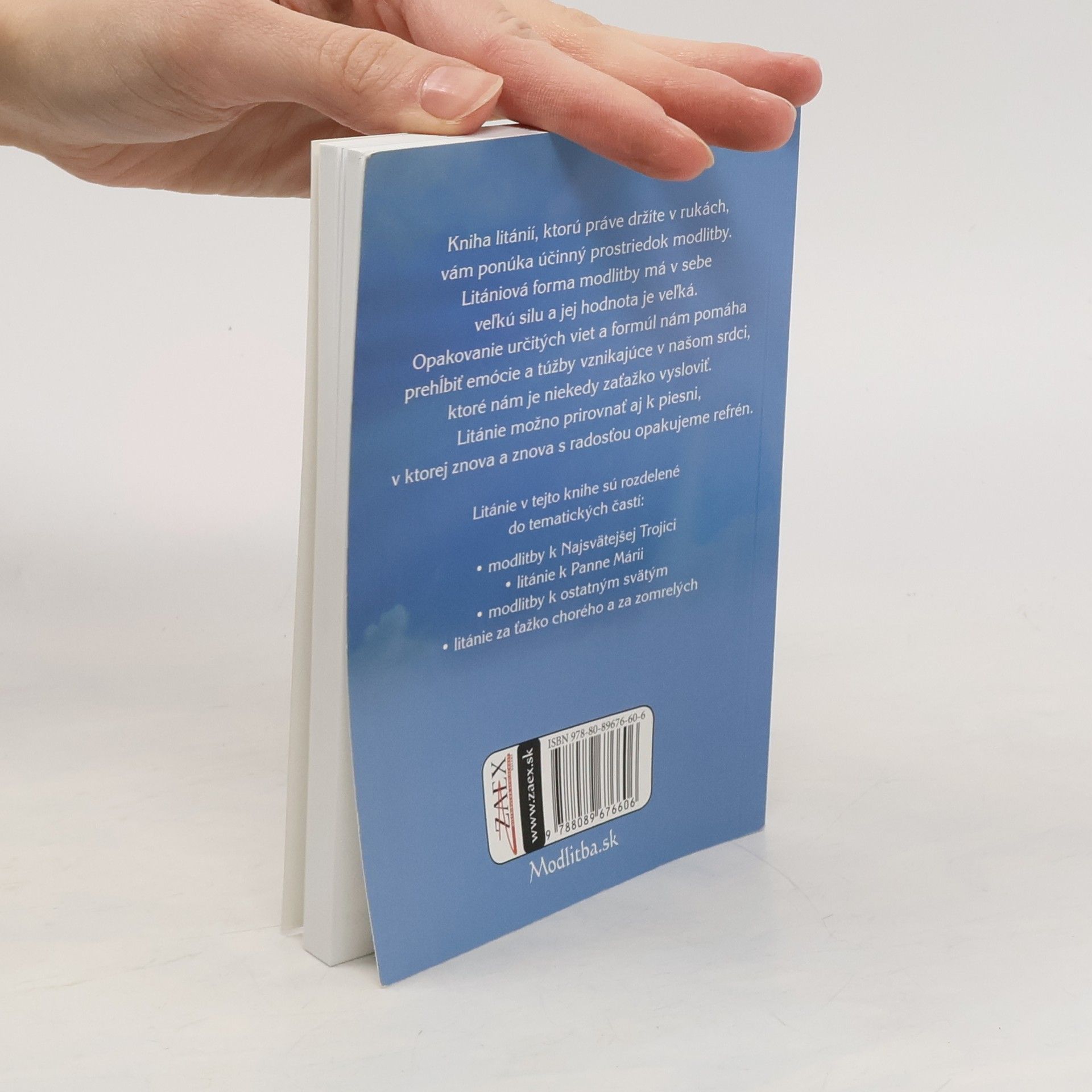 Zostavil Gabriel Varga. Kniha litánií, ktorú práve držíte v rukách, vám ponúka účinný prostriedok modlitby. Litániová forma modlitby má v sebe veľkú silu a jej hodnota je veľká. Opakovanie určitých viet a formúl nám pomáha prehĺbiť emócie a túžby vznikajúce v našom srdci, ktoré nám je niekedy zaťažko vysloviť. Litánie možno prirovnať aj k piesni, v ktorej znova a znova s radosťou opakujeme refrén. Litánie v tejto knihe sú rozdelené do tematických častí: • modlitby k Najsvätejšej Trojici • litánie k Panne Márii • modlitby k ostatným svätým • litánie za ťažko chorého a za zomrelých