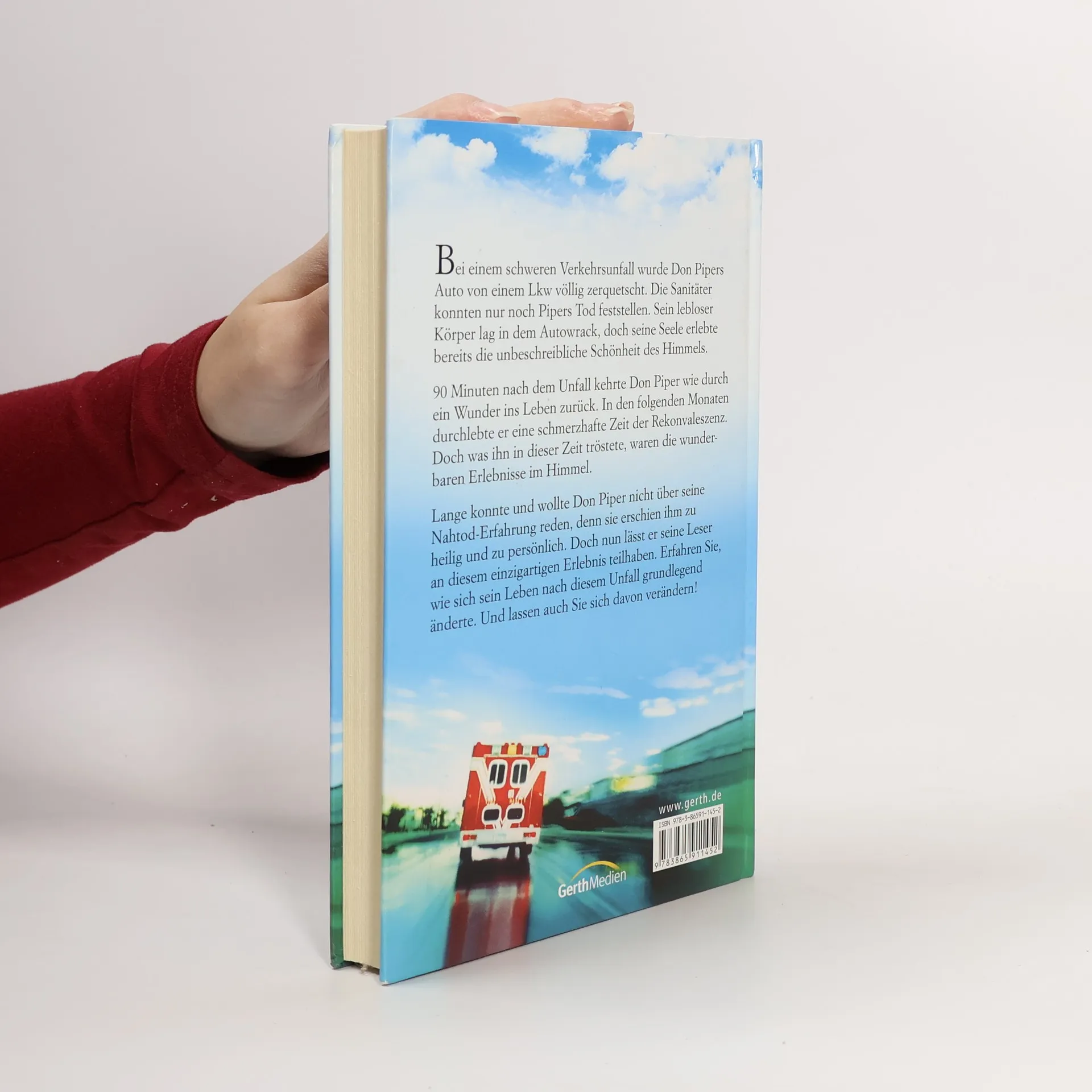 Bei einem schweren Verkehrsunfall wurde Don Pipers Auto von einem Lkw völlig zerquetscht. Die Sanitäter konnten nur noch Pipers Tod feststellen. Sein lebloser Körper lag in dem Autowrack, doch seine Seele erlebte bereits die unbeschreibliche Schönheit des Himmels. 90 Minuten nach dem Unfall kehrte Don Piper wie durch ein Wunder ins Leben zurück. In den folgenden Monaten durchlebte er eine schmerzhafte Zeit der Rekonvaleszenz. Doch was ihn in dieser Zeit tröstete, waren die wunderbaren Erlebnisse im Himmel. Lange konnte und wollte Don Piper nicht über seine Nahtod-Erfahrungen reden, denn sie erschienen ihm zu heilig und zu persönlich. Doch nun lässt er seine Leser an diesem einzigartigen Erlebnis teilhaben. Erfahren Sie, wie sich sein Leben nach diesem Unfall grundlegend änderte. Und lassen auch Sie sich davon verändern!