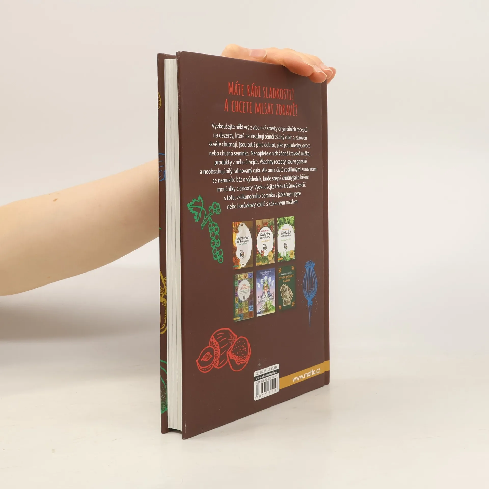 Máte rádi sladkosti? A chcete mlsat zdravě? Vyzkoušejte některý z více než stovky originálních receptů na dezerty, které neobsahují téměř žádný cukr, a zároveň skvěle chutnají. Jsou totiž plné dobrot, jako jsou ořechy, ovoce nebo chutná semínka. Nenajdete v nich však žádné kravské mléko, produkty z něho či vejce. Všechny recepty jsou veganské a neobsahují bílý rafinovaný cukr. Ale ani s čistě rostlinnými surovinami se nemusíte bát o výsledek, bude stejně chutný jako běžné moučníky a dezerty. Vyzkoušejte třeba třešňový koláč s tofu, velikonočního beránka s jablečným pyré nebo borůvkový koláč s kakaovým máslem.