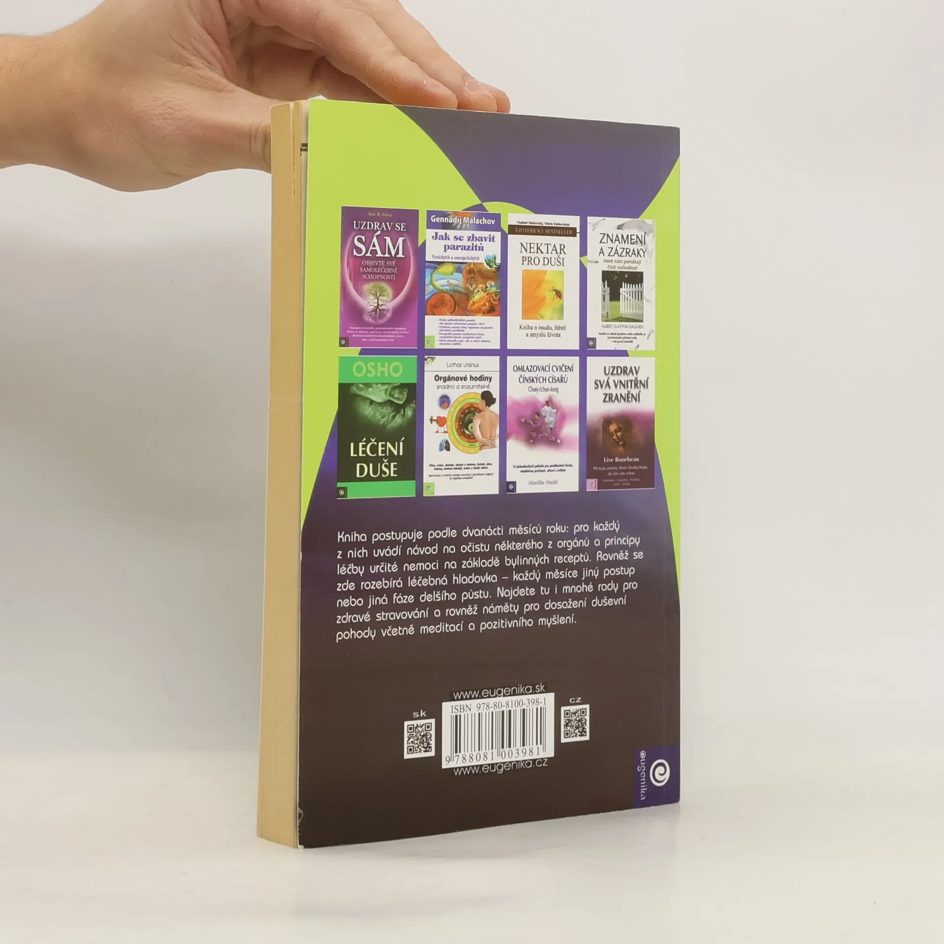 Kniha postupuje podle dvanácti měsíců roku: pro každý z nich uvádí návod na očistu některého z orgánů a principy léčby určité nemoci na základě bylinných receptů. Rovněž se zde rozebírá léčebná hladovka - každý měsíce jiný postup nebo jiná fáze delšího půstu. Najdete tu i mnoh rady pro zdravé stravování a rovněž náměty pro dosažení duševní pohody včetně meditací a pozitivního myšlení.