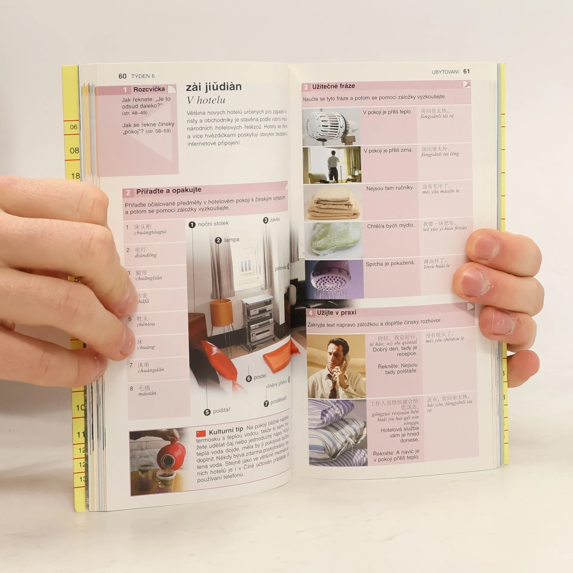Učebnice pro začátečníky a mírně pokročilé, nevyžaduje žádné předchozí znalosti jazyka, výuka formou přiměřené slovní zásoby a konverzace. Kniha je rozdělena do tematických celků, zahrnuje oboustranný slovníček a průvodce jídelním lístkem.