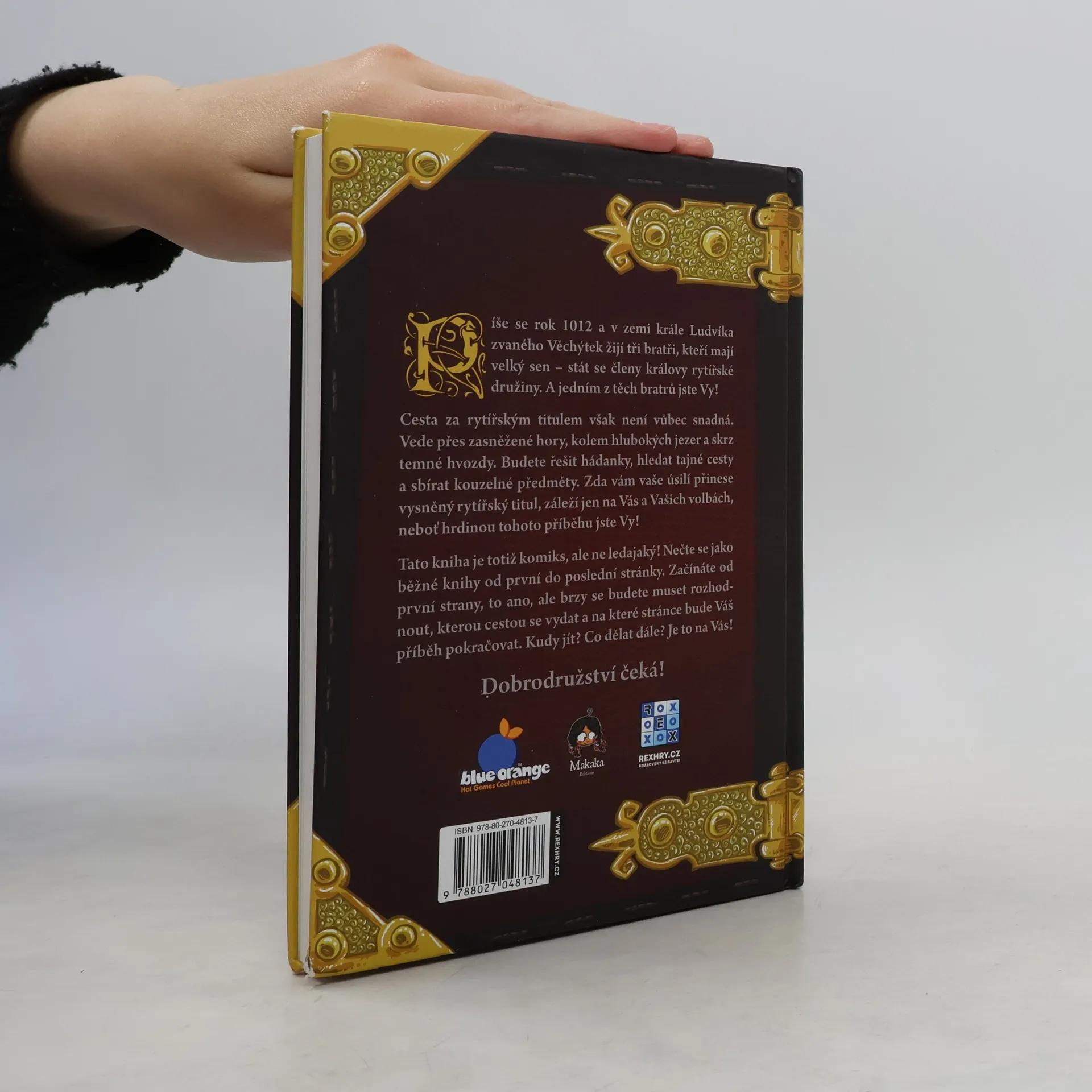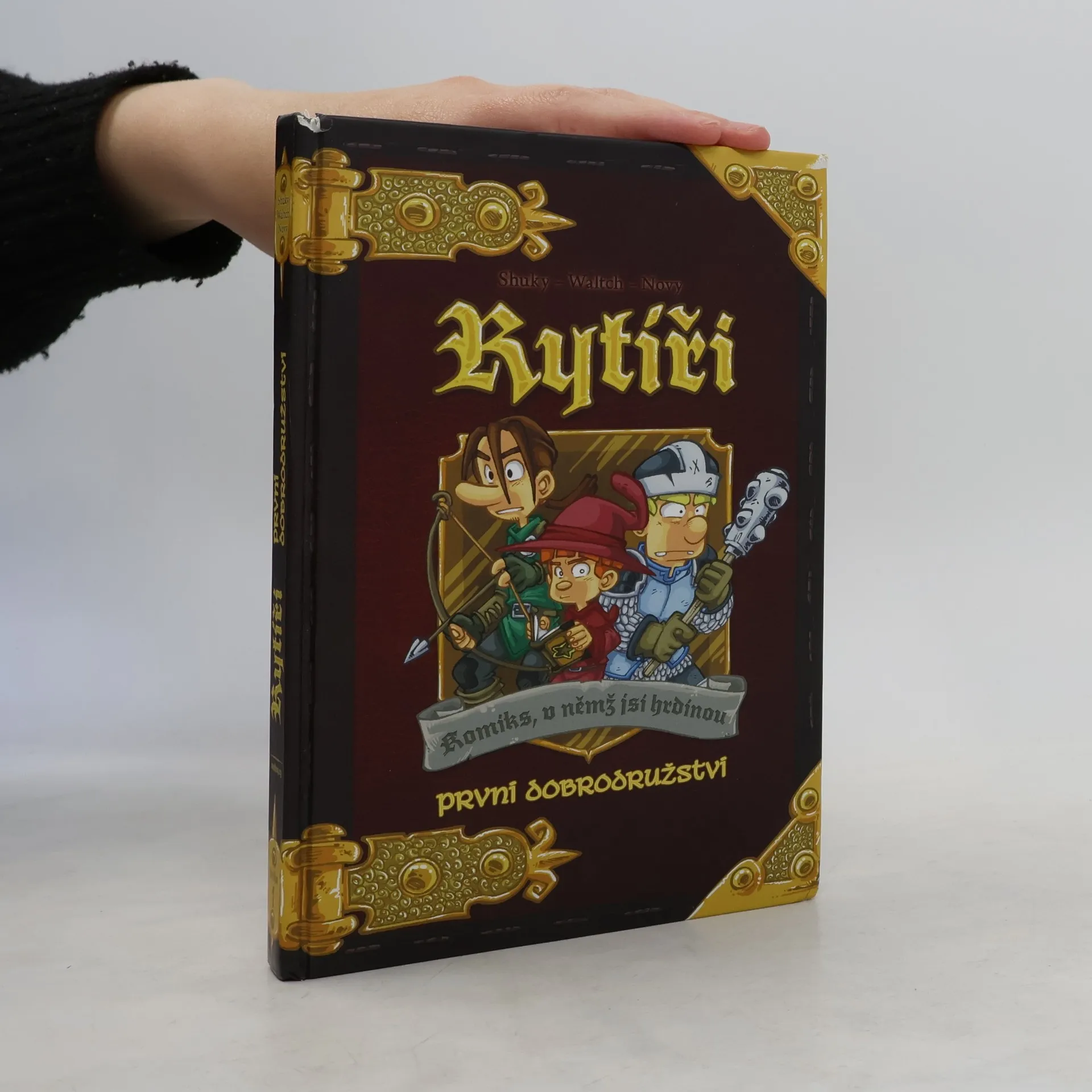 Rytíři: První dobrodružství je kniha z řady Komiks, v němž jsi hrdinou, v níž se originálně spojují dva oblíbené prvky: komiks s gamebookem, tedy s knihou, v níž vaše rozhodnutí určují další pokračování děje. V této komiksové knize se stanete jedním ze tří mladých sedláckých bratrů, kteří se rozhodli, že se stanou rytíři. Aby toho dosáhli, musí ale obstát v rytířské zkoušce. Budete s nimi prozkoumávat neznámé končiny, bojovat s lupiči, hledat poklady a získávat zbraně a magické předměty. Je jen na vás, kam se se svým hrdinou vydáte. Jeho osud je zcela ve vašich rukou. Svou obtížností, příběhem i zpracováním je hra obzvláště vhodná pro mladší hráče od desíti let.