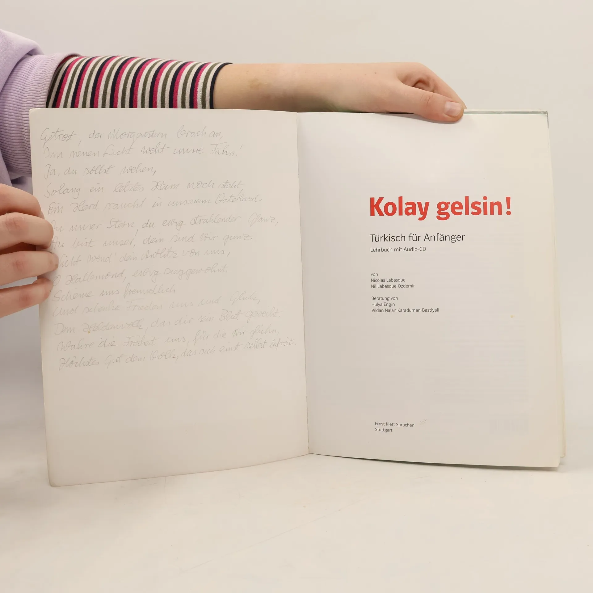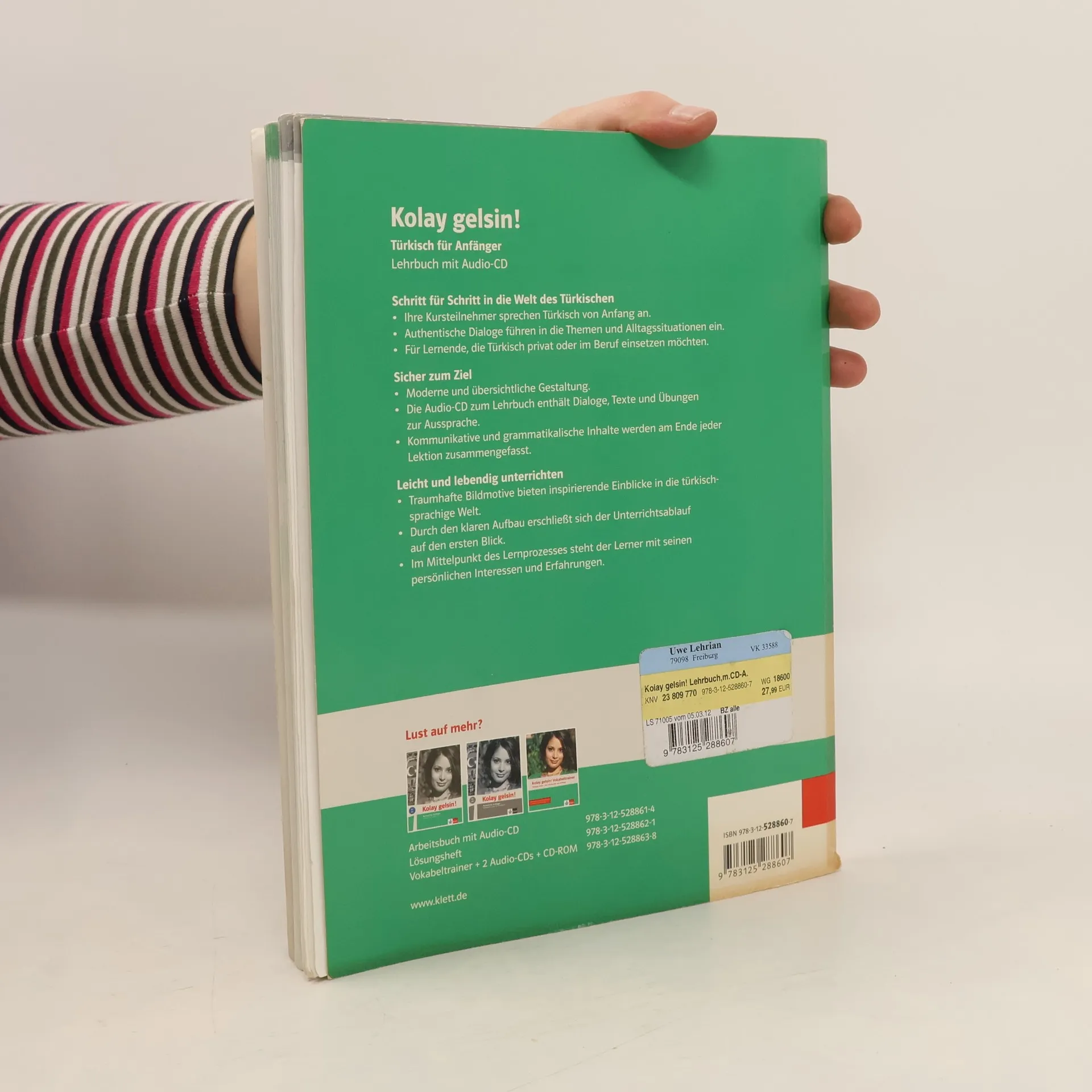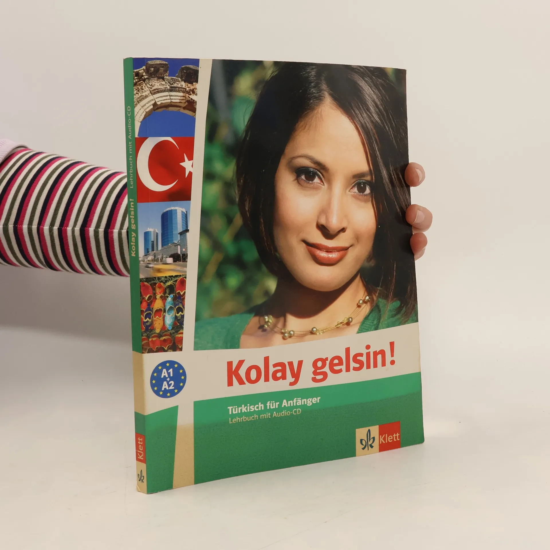 Kolay gelsin! - Türkisch für Anfänger Das neue Türkisch-Lehrwerk von Klett eignet sich ideal für den Einsatz im Semesterrhythmus. Eine Einladung in die Türkei! Kolay gelsin! ermöglicht den Kursteilnehmern ein effizientes Erlernen der türkischen Sprache, um in der Türkei sowohl als Tourist als auch beruflich schnell zurechtzukommen. Das Spezifische der Kultur und Lebensweise der Türkei wird für den Lerner spür- und erlebbar gemacht. Authentische Sprechsituationen geben die Atmosphäre des Landes wieder. Viele Lesetexte mit landeskundlichem Inhalt vermitteln interkulturelle Kompetenz. Jede Lektion endet mit einer Seite Landeskunde mit ausführlichen Informationen zur Türkei. Sicher ans ZielDie komplexe Grammatik des Türkischen wird in kleinen Portionen vermittelt und im Gespräch geübt. Eine Seite Zusammenfassung der neuen Redemittel und Grammatik schließt jede Lektion ab. In jeder Einheit stehen Übungen zur Verfügung, die die Eigeninitiative und Aktivität fördern.3 Wiederholungseinheiten mit zusätzlichen Lernstrategien, Spielen und Checklisten zur Selbstkontrolle unterstützen den Lerner, seine erworbenen Fertigkeiten zu reflektieren, einzuschätzen und weiterzuentwickeln. Leicht und lebendig lernen und unterrichtenDurch die transparente Struktur, abwechslungsreiche Übungen und die Vermittlung von zusätzlichen Lernstrategien innerhalb jeder Lektion fällt das Unterrichten und das Lernen leichter.