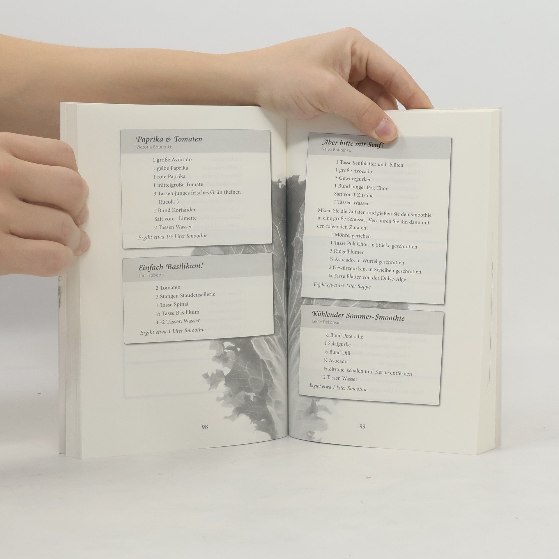 Heute ist es für viele Menschen nicht einfach, auf ihre Ernährung zu achten, denn der Alltag verlangt uns viel ab und lässt uns wenig Zeit. So essen wir dann mal eben etwas zwischendurch und leiden häufig unter Konzentrationsmangel, Schlaflosigkeit, Antriebslosigkeit oder einem anderen Symptom von Nährstoffmangel. Victoria Boutenkos Antwort auf diese ernährungsbedingten Probleme unserer Zeit sind die GRÜNEN SMOOTHIES. Dieser Wundertrank aus grünem Blattgemüse, anderem Gemüse, (Wild-)Kräutern, Obst und Wasser wird in einem leistungsstarken Mixer zubereitet und versorgt uns mit allem, was wir brauchen: Er ist ein wahres Füllhorn an Vitalstoffen – ungesättigten Fettsäuren, Vitaminen, Mineralstoffen, Spurenelementen, Enzymen und Antioxidantien – sowie Ballaststoffen, Proteinen und Kohlenhydraten … und schmeckt einfach köstlich! „Grüne Smoothies – Ein praktischer Ratgeber mit 200 leckeren Rezepten“. • lässt uns an den Erfahrungen teilhaben, die Victoria in den letzten Jahren mit den grünen Smoothies gewonnen hat; • beantwortet Fragen, die ihr häufig – von Menschen auf der ganzen Welt – gestellt werden; • gibt viele praktische Hinweise und Tipps rund um die Zubereitung von grünen Smoothies; • enthält ein Verzeichnis mit Heil- und Wildkräutern, die man selbst in der Natur sammeln kann, • und 200 hell- bis dunkelgrüne Smoothie-Rezepte, die einem das Wasser im Mund zusammenlaufen lassen und dazu inspirieren, selbst kreativ zu werden!