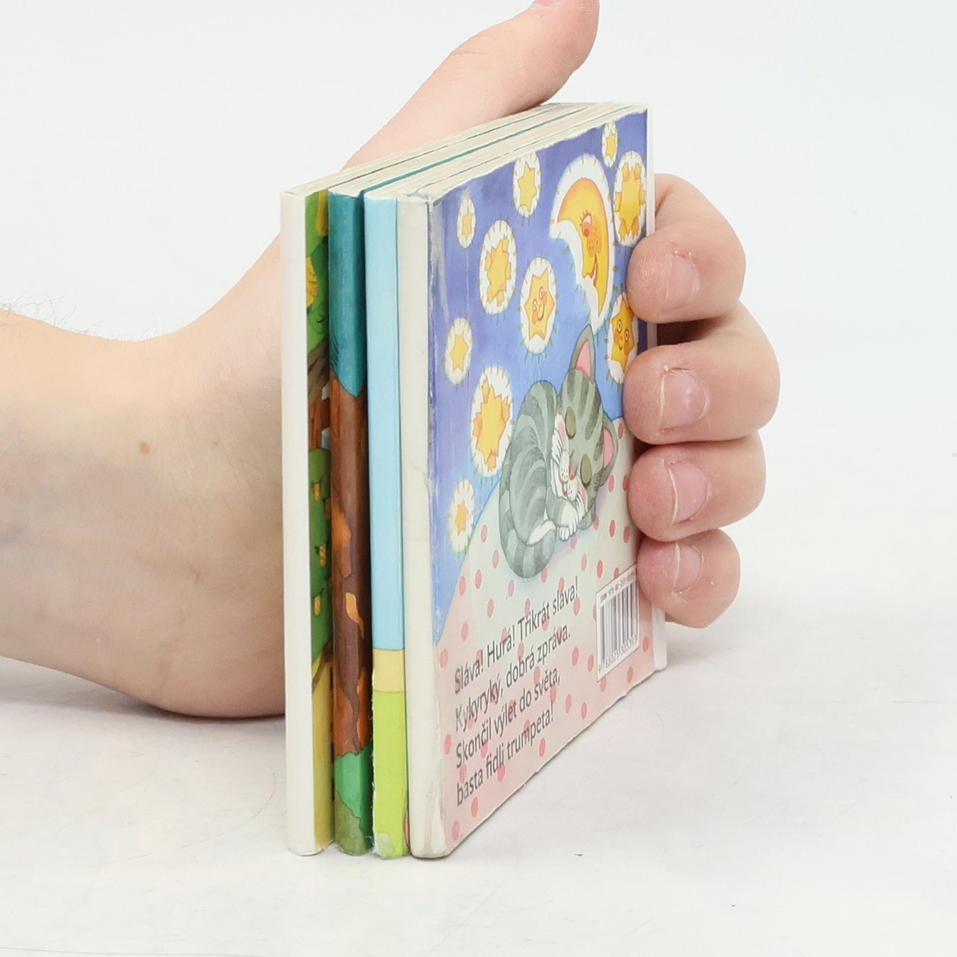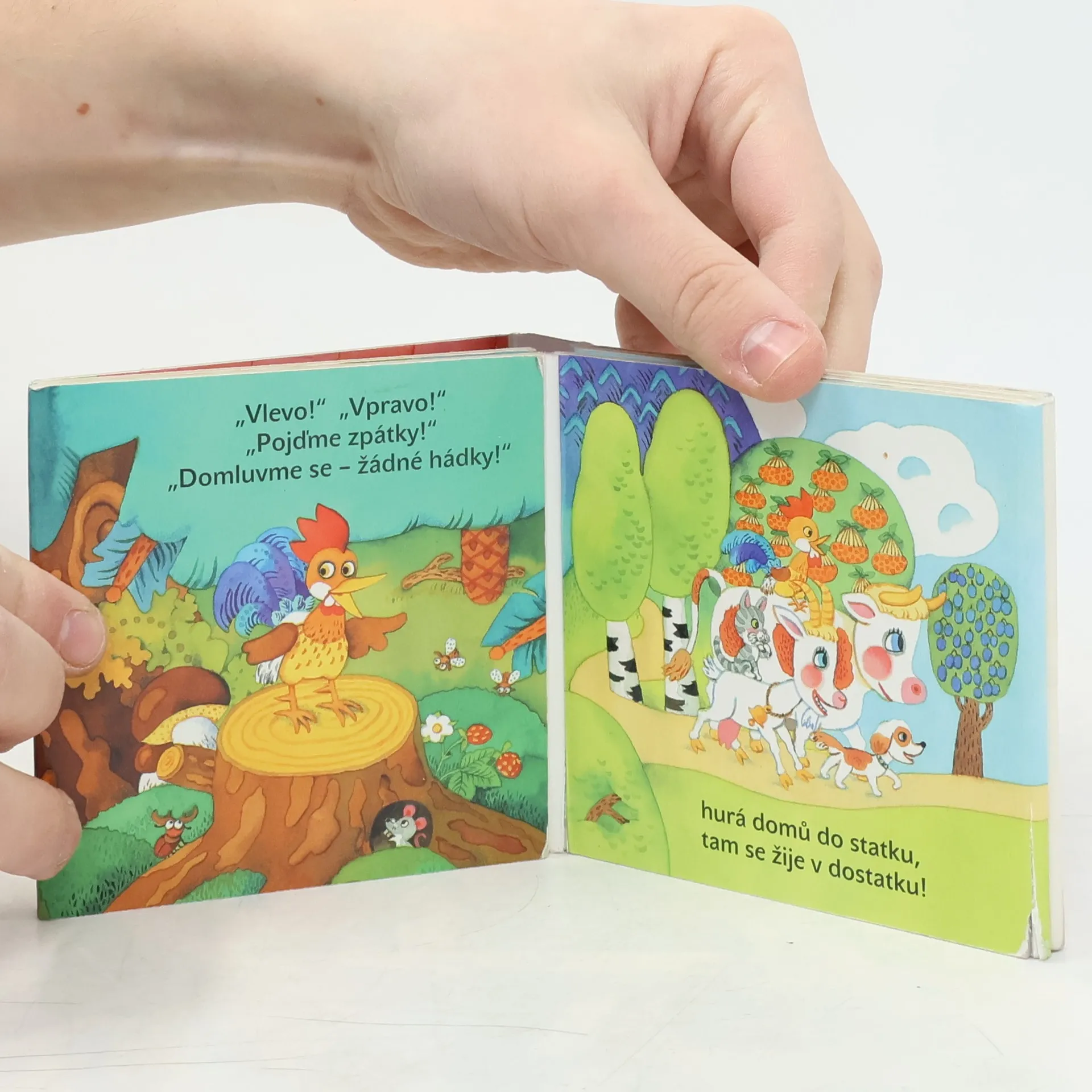 Rozkládací leporelo s jednou básničkou. Basta fidli trumpeta Hafan v boudě vrčí zlostí: "Těžká služba za pár kostí! Radši půjdu do světa, basta fidli trumpeta!" Kočka mňoukla: "Pro lov myší je mě škoda, ...