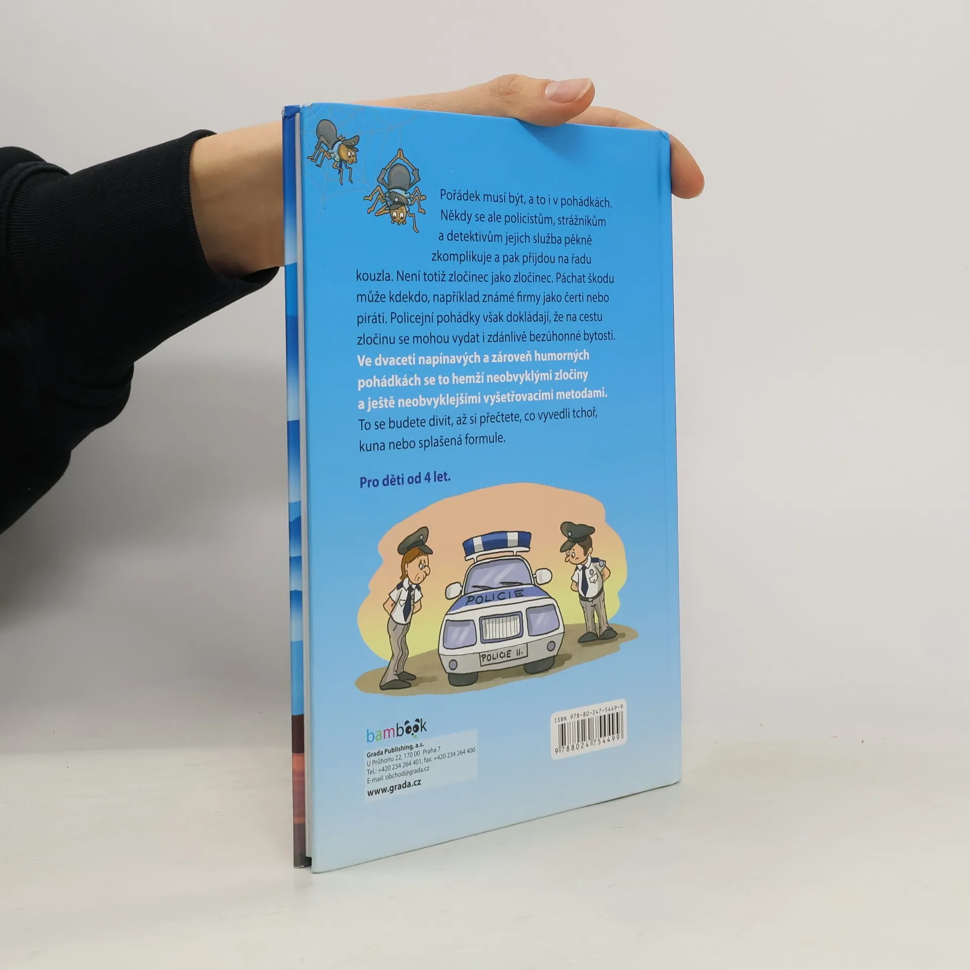 Víte, že není zločinec jako zločinec? Páchat škodu může kdekdo, například čert nebo pirát, známé firmy, řeknete si. Policejní pohádky však dokládají, že na cestu zločinu se mohou vydat i zdánlivě bezúhonné bytosti. To se budete divit, až si přečtete, co vyvedli tchoř, kuna nebo splašená formule. V pohádkách ale nemají zločinci šanci, jako strážci pořádku totiž nastupují pavouci s píšťalkou, kouzelná policejní čepice, kočka Adelinda nebo detektiv Karamelka. Oblíbená autorka Zuzana Pospíšilová přichází s další pohádkovou sérií z edice Pohádkové čtení, kterou vtipnými ilustracemi doprovodila Zdeňka Študlarová.