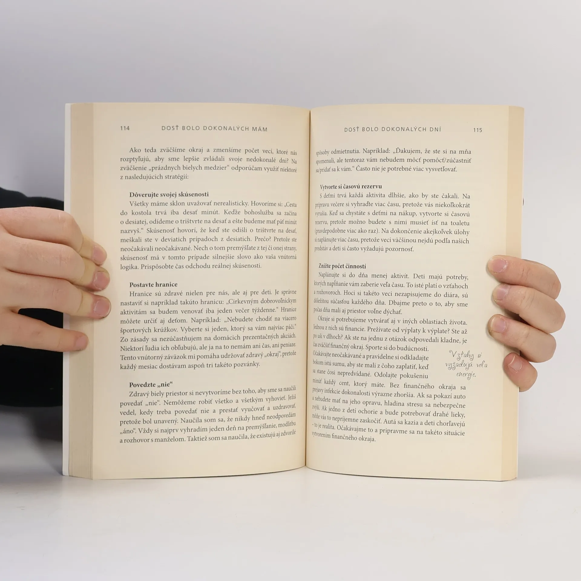 Odnaučte sa snahe byť dokonalou! Ak sa vám už stalo, že ste zabudli vyzdvihnúť dieťa zo škôlky alebo ste sa do obchodu vybrali s dvomi rozdielnymi topánkami na nohách, táto kniha je pre vás. Rola matky nie je pre ženy, u ktorých sa prejavujú symptómy „infekcie dokonalosti“. Dokonalé mamy neexistujú, rovnako ani dokonalé deti, dokonalé domy, dokonalé postavy, dokonalé manželstvá či dokonalé jedlá. Jill Savageová úprimne hovorí o vlastných zlyhaniach pri výchove detí, aby mamám na celom svete pomohla zbaviť sa snahy pôsobiť dokonalo a odnaučila ich porovnávať sa s inými ženami. Kniha Dosť bolo dokonalých mám vám pomôže: zmeniť svoje nesplniteľné očakávania na realistické, aby ste lepšie zvládali každodenné výzvy, byť milosrdnými a láskavými k manželovi a deťom aj v náročných situáciách, nepodľahnúť nutkaniu porovnávať sa s inými ženami, objaviť krásu milosrdenstva, ktoré zažijete, ak prestanete posudzovať iných aj samy seba, predchádzať sklamaniu tým, že prijmete svoju reálnu rodinu, problémy a svoj nedokonalý, ale reálny život.