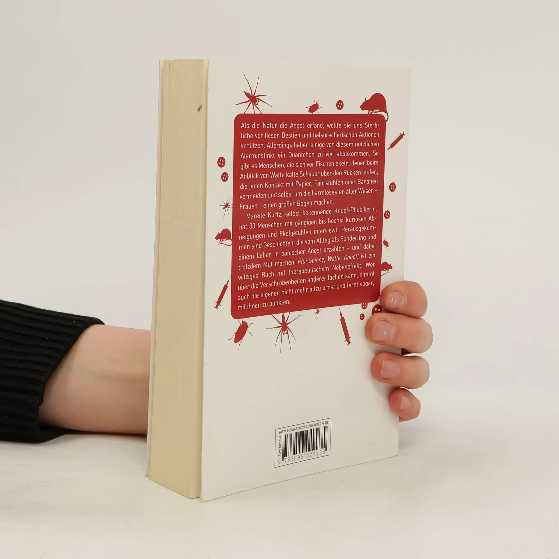 Die eigenen Macken zu akzeptieren ist eine gute Voraussetzung für ein zufriedenes und glückliches Leben. Mareile Kurtz – selbst Phobikerin – hat Menschen mit den unterschiedlichsten Ängsten und Abneigungen getroffen und mit ihnen über ihre skurrilen Panikattacken, verrückten Alltagsprobleme und liebgewonnenen Ticks gesprochen. Die Geschichten sind außergewöhnlich, selbstironisch und tragisch-komisch: Sie erzählen von Knopf-, Clown-, Spritzen-, Puppen-, Pappe-, Frauen- und Kaugummiphobien. Der Autorin ist ein liebevolles und witziges Plädoyer gelungen, über das sich »Normalos« und »Angsthasen« gleichermaßen freuen können. Denn 'Pfui Spinne, Watte, Knopf!' zeigt: Dort draußen gibt es immer jemanden, der noch ein bisschen verschrobener ist als man selbst.