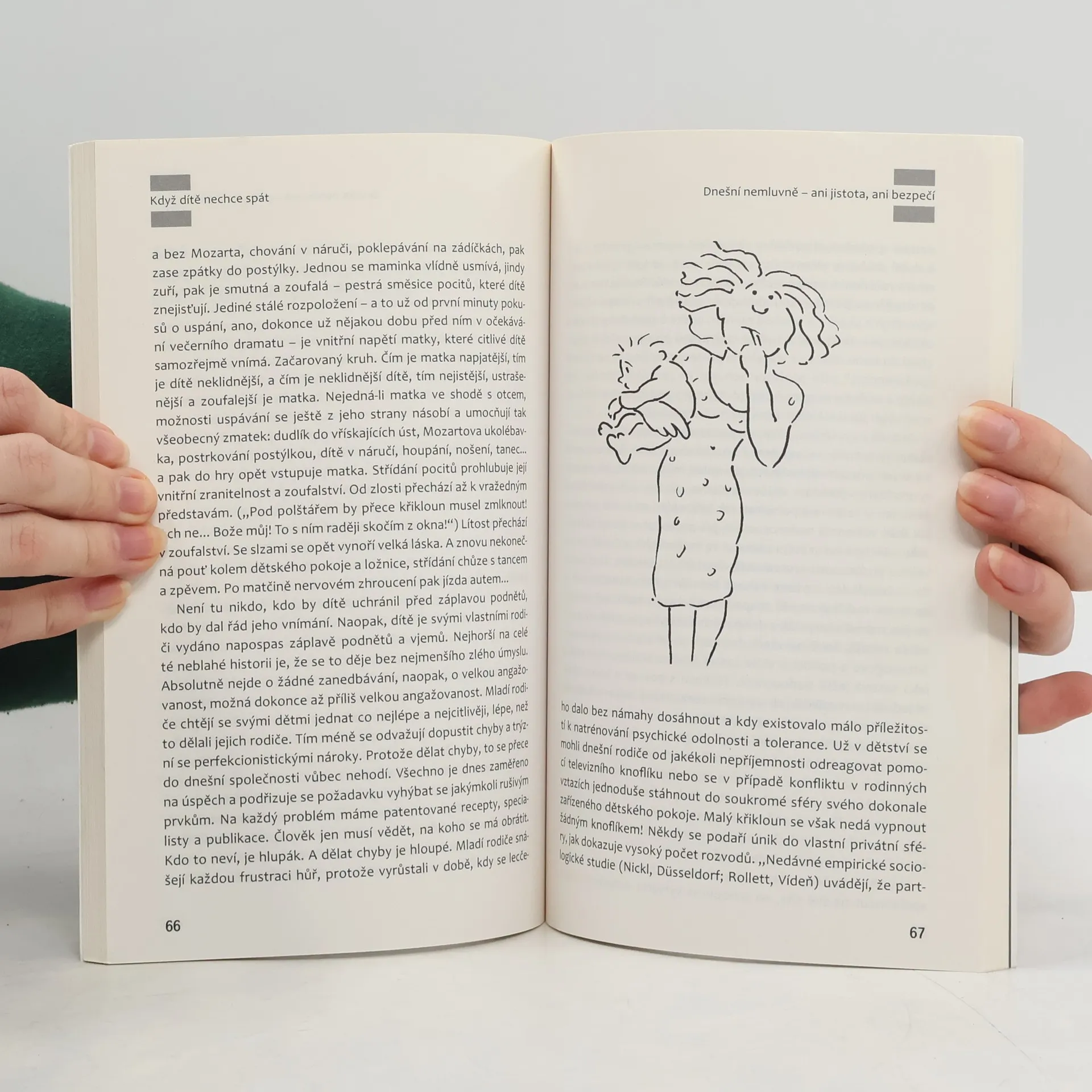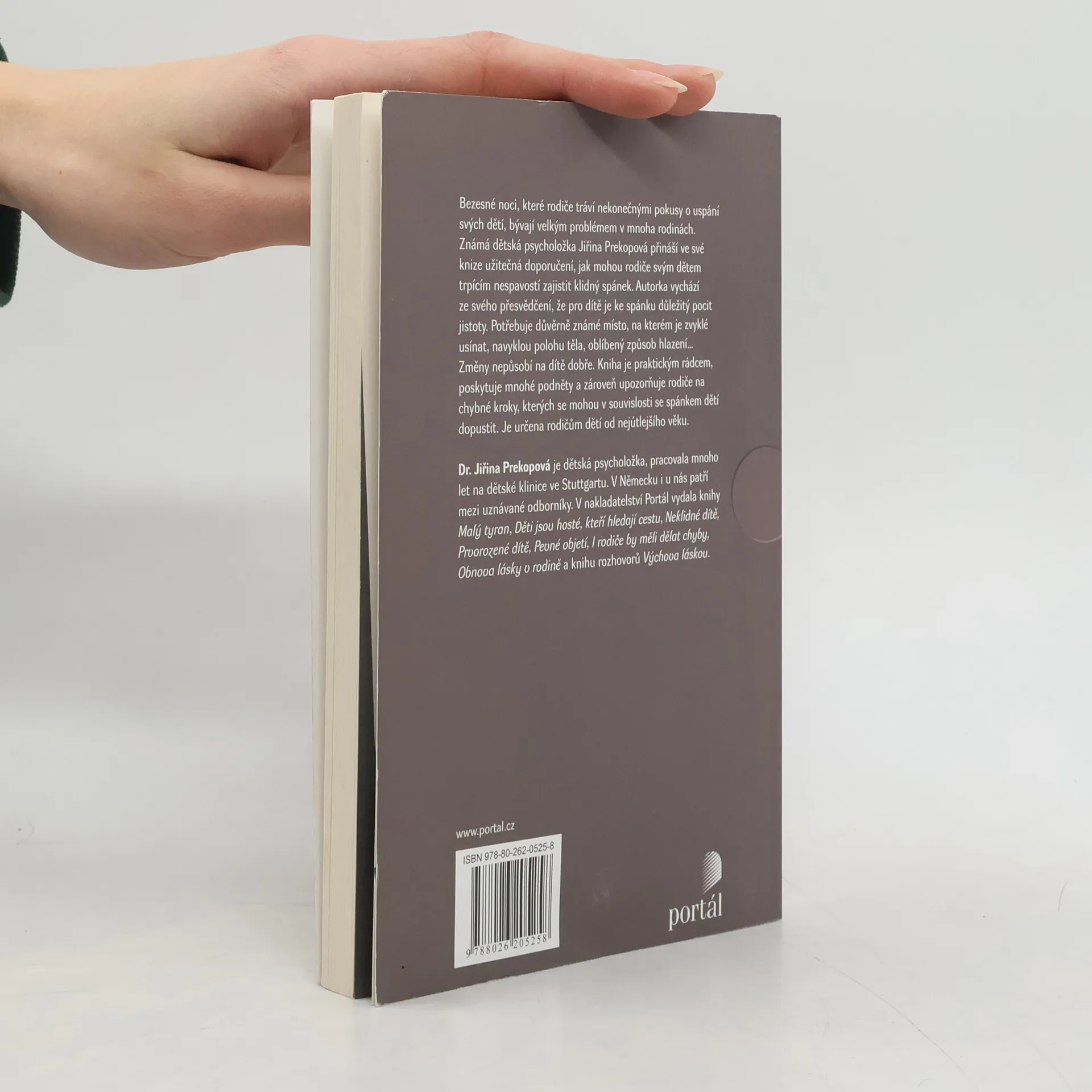 Bezesné noci, které rodiče tráví nekonečnými pokusy o uspání svých dětí, bývají velkým problémem v mnoha rodinách. Známá dětská psycholožka Jiřina Prekopová přináší ve své knize užitečná doporučení, jak mohou rodiče svým dětem trpícím nespavostí zajistit klidný spánek. Autorka vychází ze svého přesvědčení, že pro dítě je ke spánku důležitý pocit jistoty. Potřebuje důvěrně známé místo, na kterém je zvyklé usínat, navyklou polohu těla, oblíbený způsob hlazení… Změny na dítě nepůsobí dobře. Kniha je praktickým rádcem, poskytuje mnohé podněty a zároveň upozorňuje rodiče na chybné kroky, kterých se mohou v souvislosti se spánkem dětí dopustit. Je určena rodičům dětí od nejútlejšího věku.(Portál)