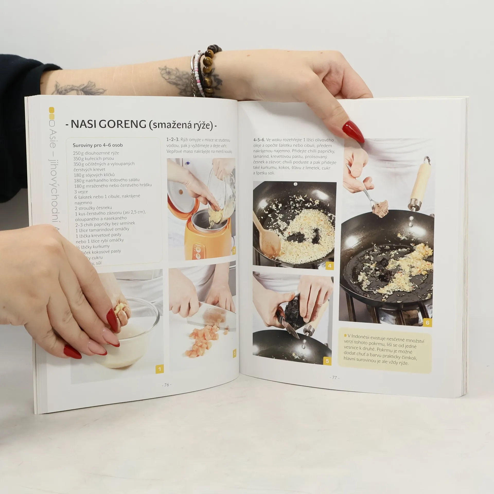 Kompletní kurz světové kuchyně je připravený ve spolupráci s šéfkuchaři prestižní mezinárodní italské kuchařské školy ALMA. 120 receptů na nejznámější či nejtypičtější pokrmy národních kuchyní je seřazeno podle jednotlivých světadílů a zemí. Jejich hlavní součástí je názorný výklad s barevnými fotografiemi, které krok za krokem popisují přípravu, vysvětlují jednotlivé postupy od základních až po pokročilé a předvádějí, jak pokrm správně servírovat. Kniha je velkým pomocníkem i těm, kdo nejsou znalci exotických pokrmů, a to nejen proto, že nabízí velmi jasný postup – v závěru je též uveden podrobný slovníček s vysvětlením nejsložitějších pojmů a s radami, kde získat nebo čím případně nahradit cizokrajné suroviny.