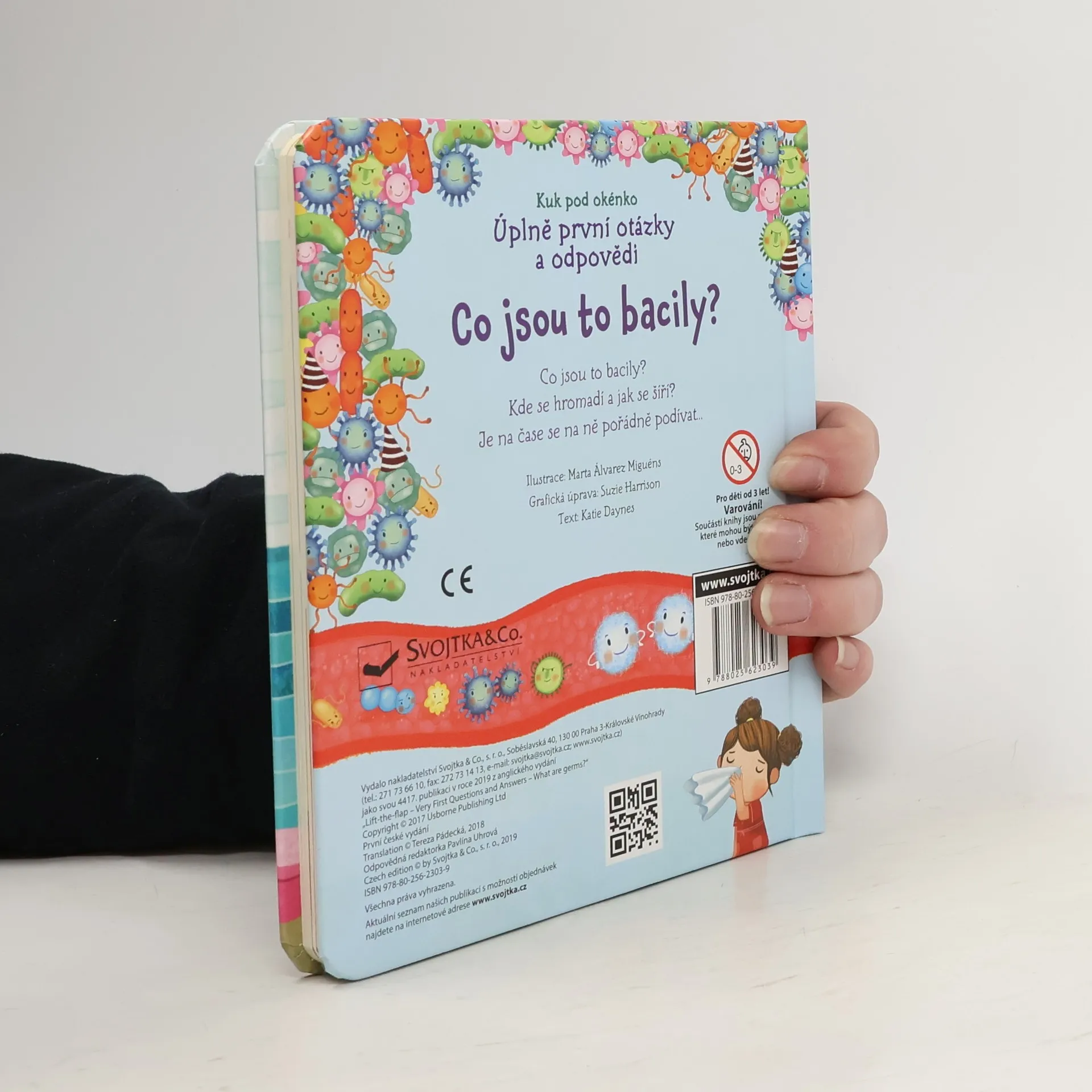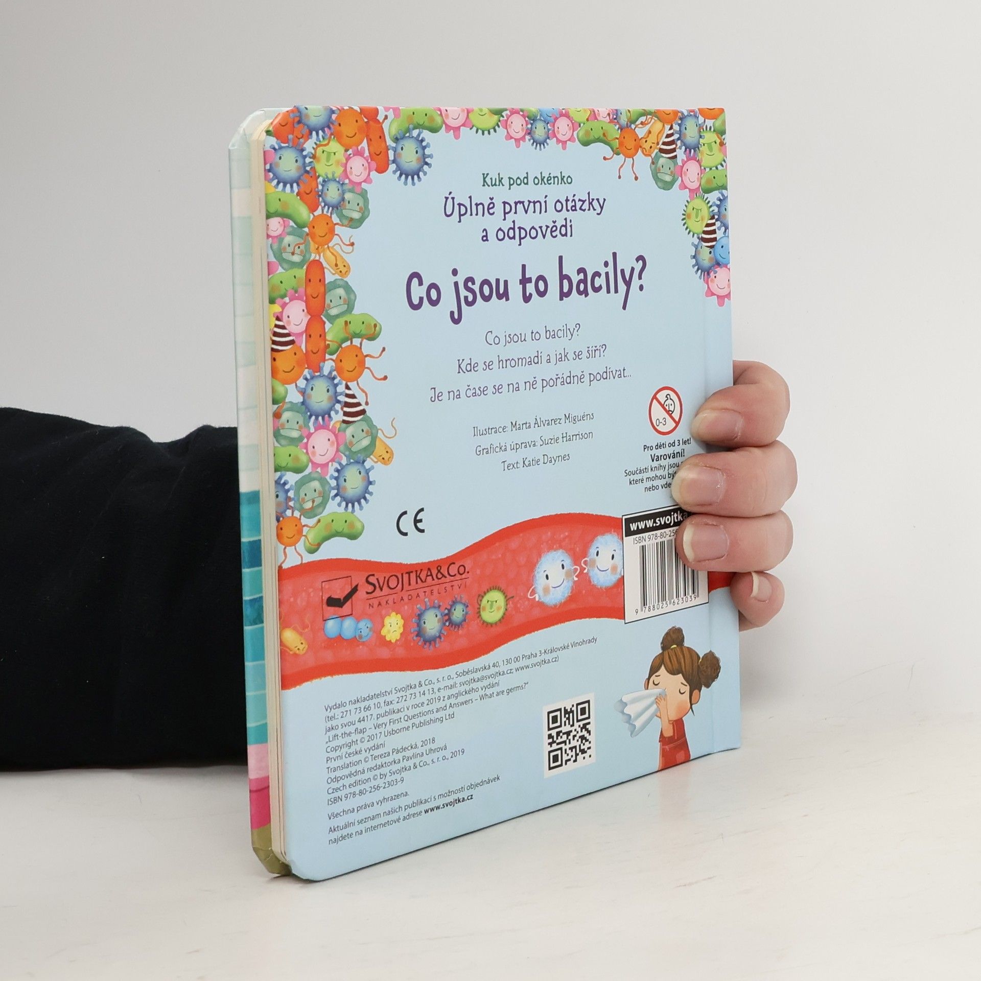 Jsou tak malinké, že je ani neuvidíš. Bakterie a bacily jsou všude kolem nás. Některé nám pomáhají, jiné ale způsobují nemoci. V bohatě ilustrované knížce s odklápěcími okénky zjistíš, kde všude bacily žijí, jak se šíří a jak se naše tělo může proti bacilům bránit.