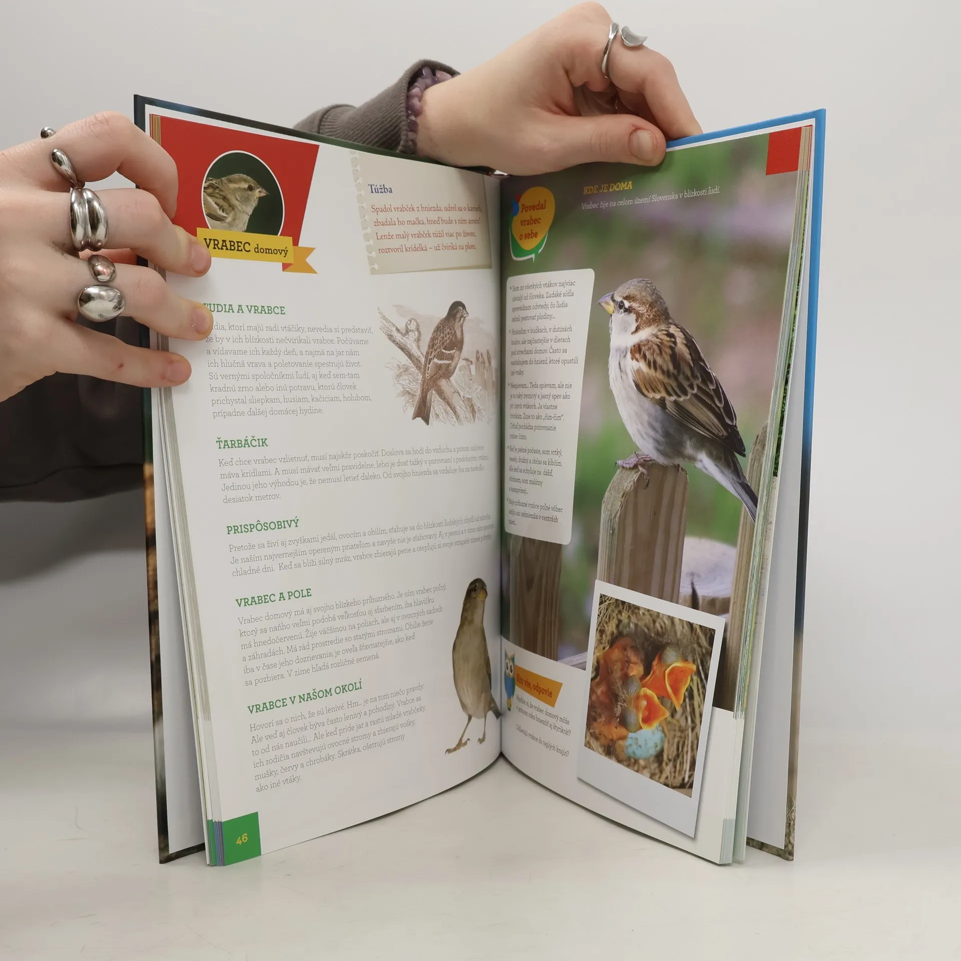 Pohľad na zvieratká v prírode nás často poteší, pretože na všetkých je niečo pekné a zaujímavé. Vedia sa radovať i smútiť, predpovedajú počasie, sú výborní architekti či športovci. A my ľudia sme zas múdri ako sovy, pracovití ako včely, za tuhej zimy spíme ako medvede a v lete plávame ako bystré pstruhy. K zvieratkám, ktoré žijú na Slovensku, viaže autora silné puto a rád o nich deťom všeličo prezradí, čo ich poučí aj prekvapí. Napríklad, že poriadkumilovný jazvec má vo svojom byte kuchyňu a spálne, že vrabec dostane pred dažďom zlú náladu i to, že motýľ súmračník vonia jahodami... Deti pobavia vtipné básničky o každom zvieratku, a keď si knižku pozorne prečítajú, naše dravce, vtáčiky, ryby, plazy aj chrobáčiky sa čoskoro stanú ich dobrými známymi.