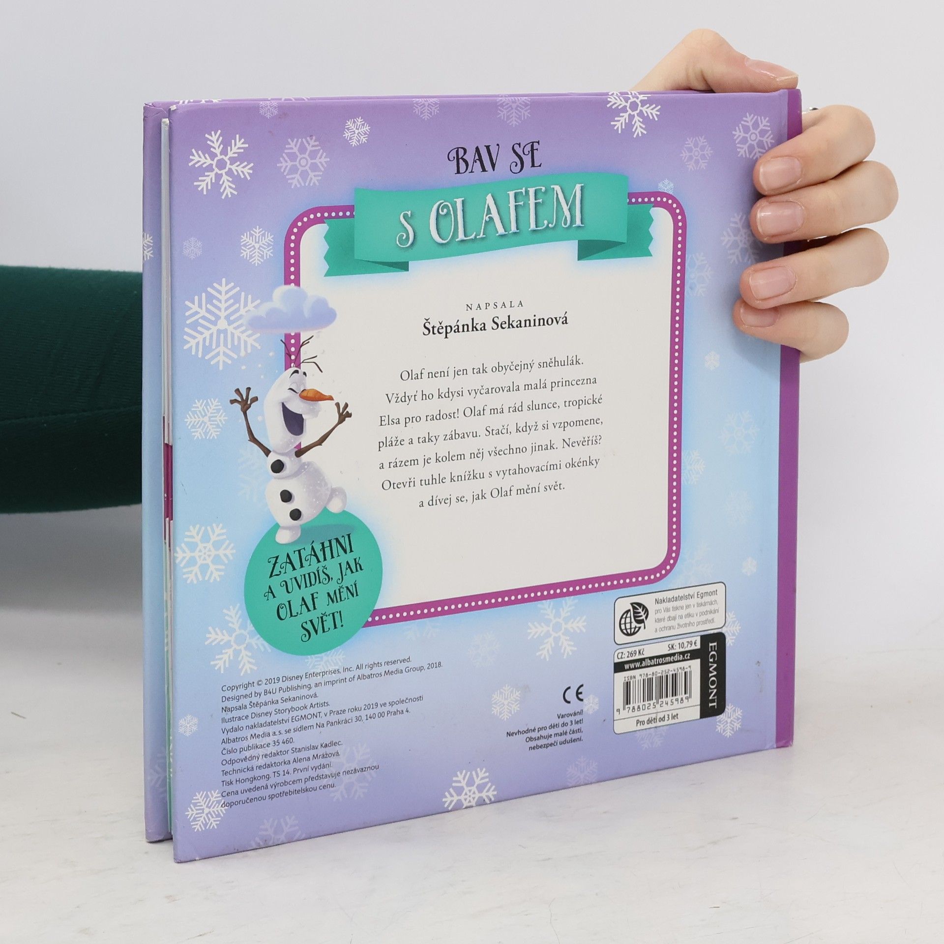 Olaf není jen tak obyčejný sněhulák. Vždyť ho kdysi vyčarovala malá princezna Elsa pro radost! Olaf má rád slunce, tropické pláže a taky zábavu. Stačí, když si vzpomene, a rázem je kolem něj všechno jinak. Nevěříš? Otevři tuhle knížku s vytahovacími okénky a dívej se, jak Olaf mění svět.
