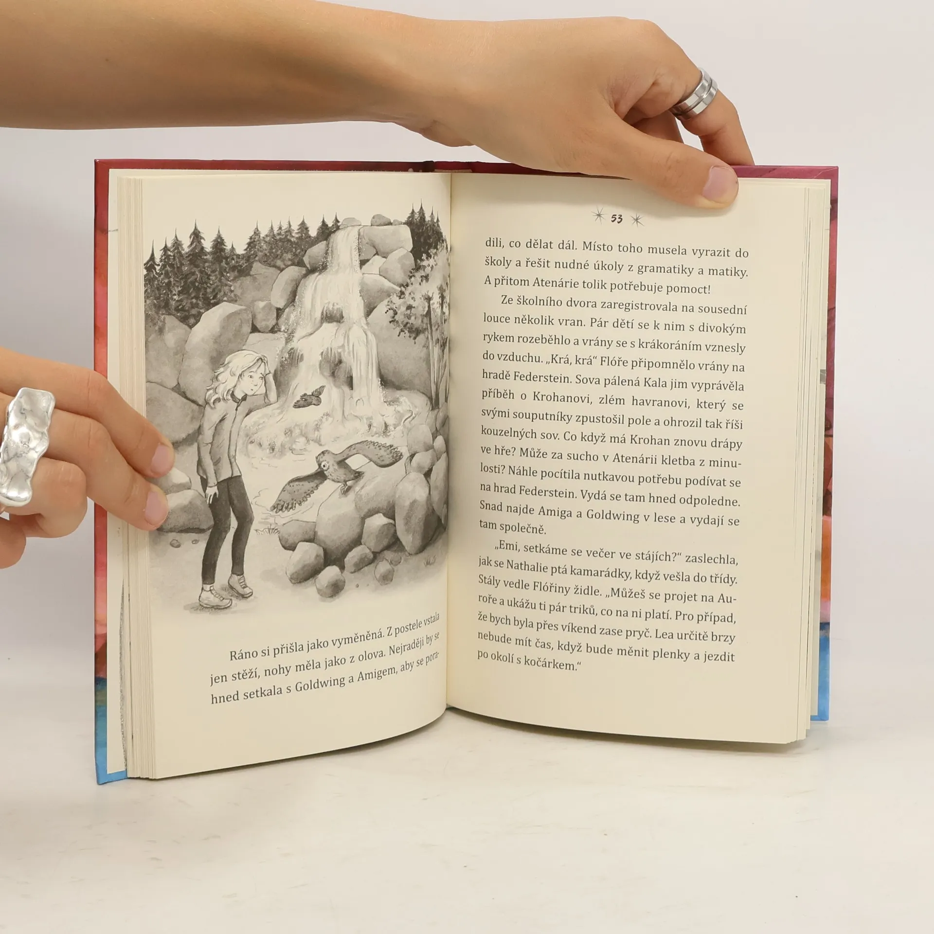 Se zlatými křídly vstříc dobrodružství! Flóra a Goldwing zažijí nečekanou návštěvu malého sýčka Amiga. In on byl dřív kouzelnou sovou. Jenže pírko z Atenárie, které opatroval po celý život, přestalo zářit. Co se jen stalo? Flóra a Goldwing objeví, že říši kouzelných sov Atenárii hrozí nebezpečí a ony jí mohou pomoct obnovit síly! Jenže jak to udělat? Má snad Flóřina babička, která přijela z Řecka na návštěvu, rozhodující vodítko?