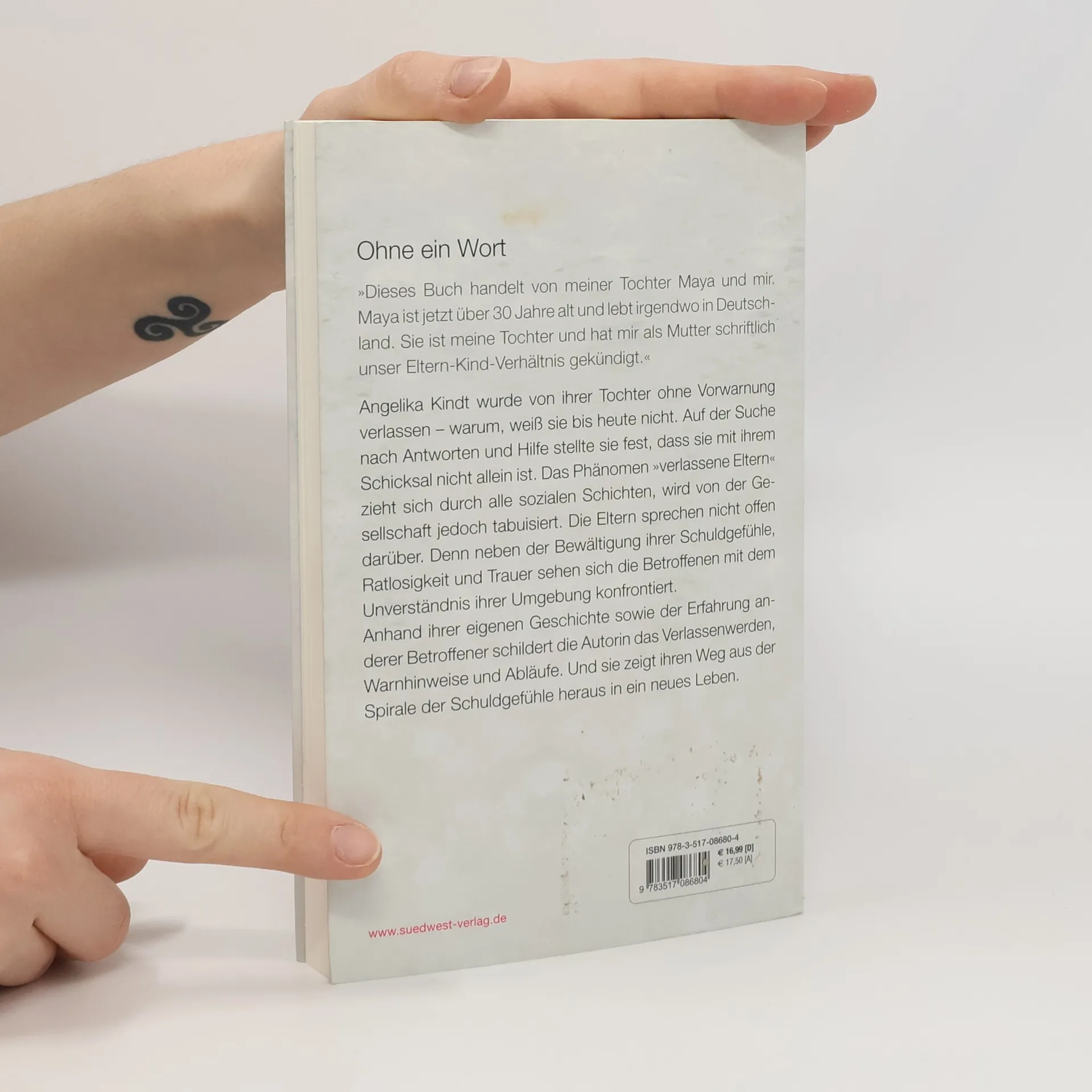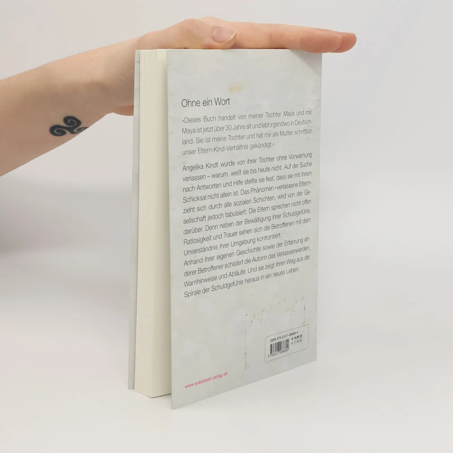 Verlassen werden ohne Vorwarnung - ein tabuisiertes Thema Angelika Kindt wurde von ihrer Tochter ohne Vorwarnung verlassen – warum, weiß sie bis heute nicht. Auf der Suche nach Antworten und Hilfe stellte sie fest, dass sie damit nicht allein ist. Das Phänomen „Verlassene Eltern“ zieht sich durch alle sozialen Schichten, wird von der Gesellschaft jedoch tabuisiert. Neben der Bewältigung ihrer Schuldgefühle, Ratlosigkeit und Trauer sehen sich die Betroffenen auch noch mit der Ablehnung und Ächtung durch die Umgebung konfrontiert. Anhand ihrer eigenen Geschichte sowie der Erfahrung anderer Betroffener schildert die Autorin den Prozess des „Verlassenwerdens“, die Warnhinweise und Abläufe. In Zusammenarbeit mit einer Psychologin werden Strategien und Handlungsvorschläge genannt, die betroffenen Eltern den Umgang mit ihrer schwierigen Situation erleichtern.