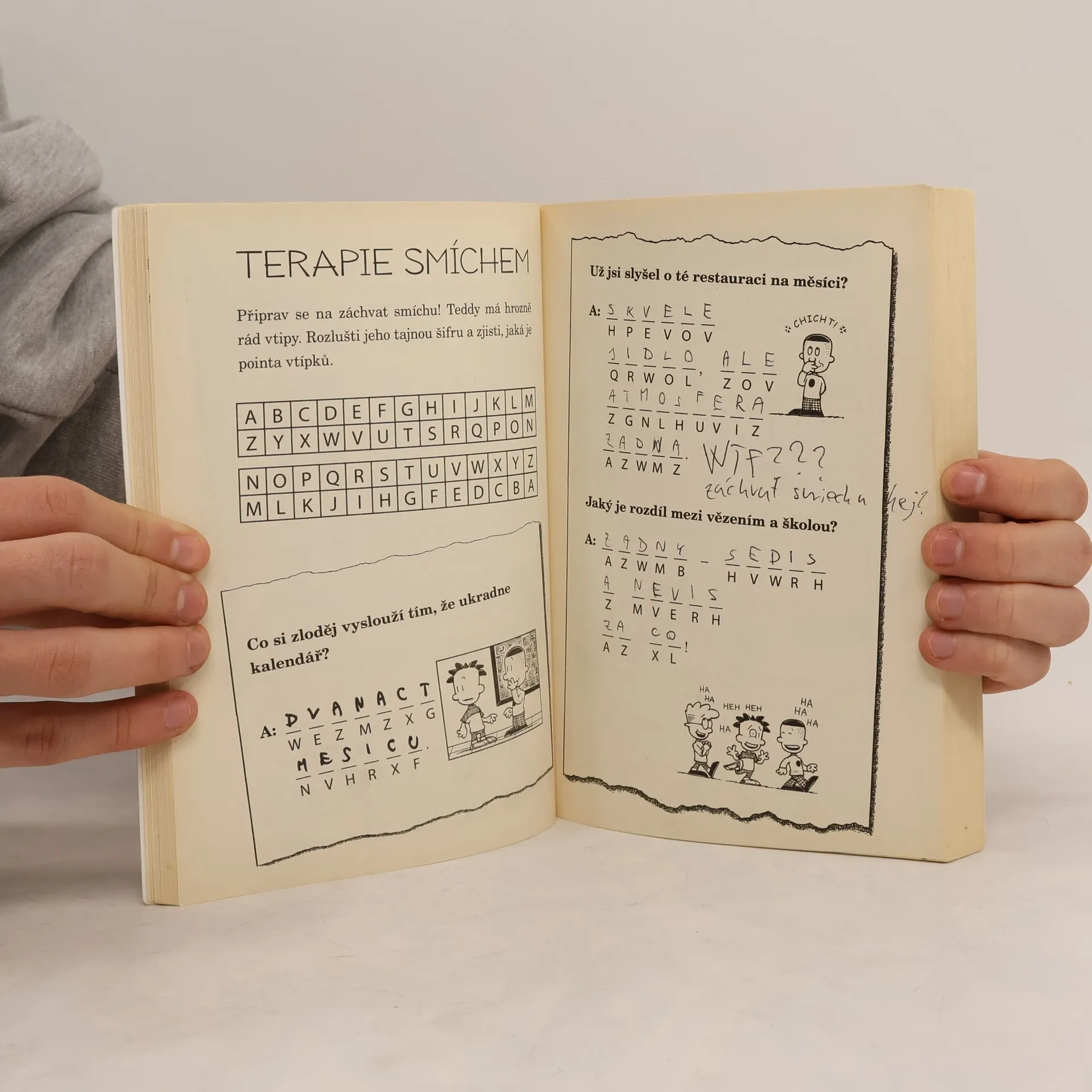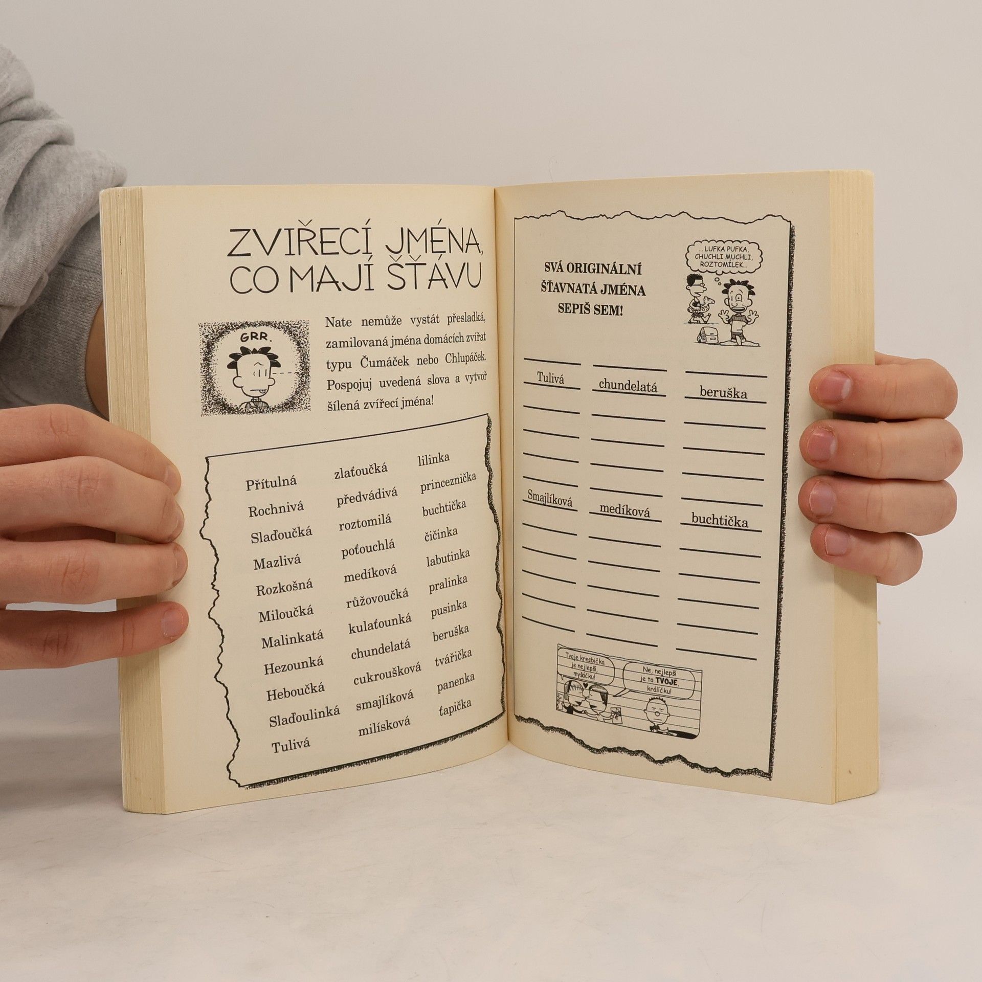 Velkej frajer Nate je opět zde a v plné parádě. A s ním i kniha plná her, křížovek, osmisměrek, sudoku, tajných kódů, komiksů, doplňovaček a mnoha dalších. Takže si určitě užiješ spoustu zábavy místo nudného dělání úkolů. Nate je skvělý karikaturista a ty se jím díky této knize aktivit můžeš stát také. A samozřejmě se zde setkáš i se svými dalšími oblíbenými hrdiny – Giny, Arthurem, Teddym a Francisem.