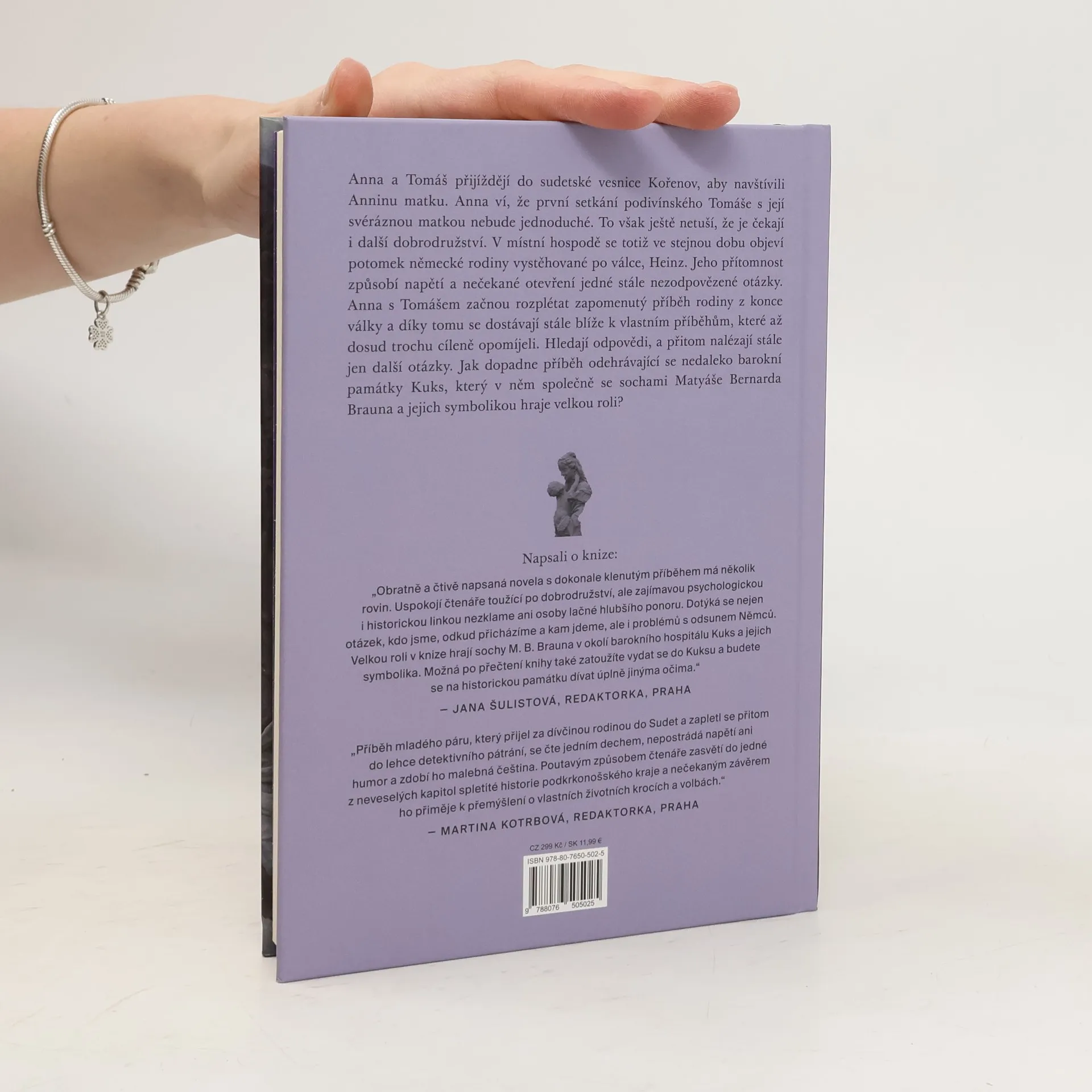 Historická fikce s psychologickými prvky a detektivní zápletkou. V několika dějových vrstvách propojuje různorodé postavy svérázných charakterů a osudů a vyústí překvapivým rozuzlením. Anna a Tomáš přijíždějí do sudetské vesnice Kořenov, aby navštívili Anninu matku. Anna ví, že první setkání podivínského Tomáše s její svéráznou matkou nebude jednoduché. To však ještě netuší, že je čekají i další dobrodružství. V místní hospodě se totiž ve stejnou dobu objeví potomek německé rodiny vystěhované po válce, Heinz. Jeho přítomnost způsobí napětí a nečekané otevření jedné stále nezodpovězené otázky. Anna s Tomášem začnou rozplétat zapomenutý příběh rodiny z konce války a díky tomu se dostávají stále blíže k vlastním příběhům, které až dosud trochu cíleně opomíjeli. Hledají odpovědi, a přitom nalézají stále jen další otázky. Jak dopadne příběh odehrávající se nedaleko barokní památky Kuks, který v něm společně se sochami Matyáše Bernarda Brauna a jejich symbolikou hraje velkou roli?