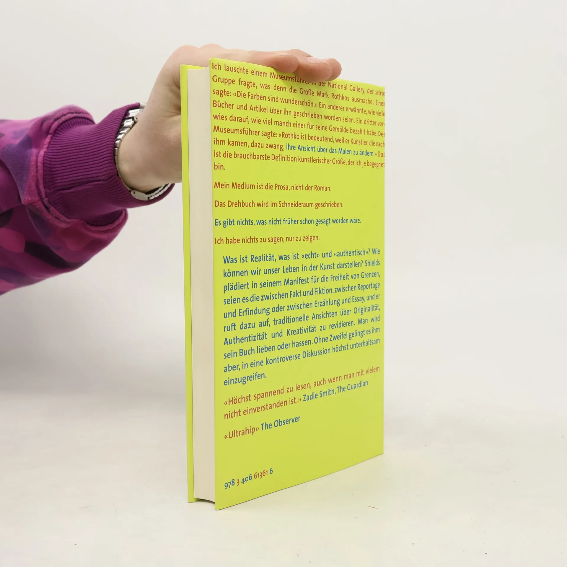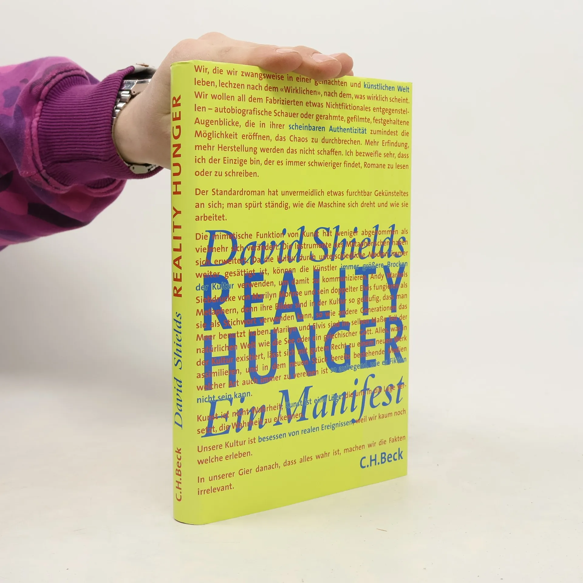 David Shields hat ein in den USA viel diskutiertes Werk verfasst, das leidenschaftlich und intelligent zu zentralen Fragen der Gegenwartskultur Stellung nimmt: Was ist Realität, was ist „echt“ und „authentisch“? Er verbindet klassische Denker wie Horaz, Nietzsche und Beckett mit der Google- und Facebook-Generation und beleuchtet die neue Kultur des Samplings und der kreativen Montage. Urheberrechte sowie die Forderung nach naturalistischer Erzählweise und linearer Handlung erscheinen ihm als Relikte einer vergangenen Ära. Shields plädiert für die Freiheit von Grenzen zwischen Fakt und Fiktion, Reportage und Erfindung sowie Erzählung und Essay. Sein provokantes und informatives Werk besteht größtenteils aus Zitaten, Aphorismen und Anekdoten anderer Autoren und regt dazu an, traditionelle Ansichten über Originalität und Kreativität zu hinterfragen. Leser werden seine Thesen entweder lieben oder ablehnen, doch er gelingt es, allen Seiten in der kontroversen Debatte auf unterhaltsame Weise die Gründe für ihre Argumentation zu liefern.