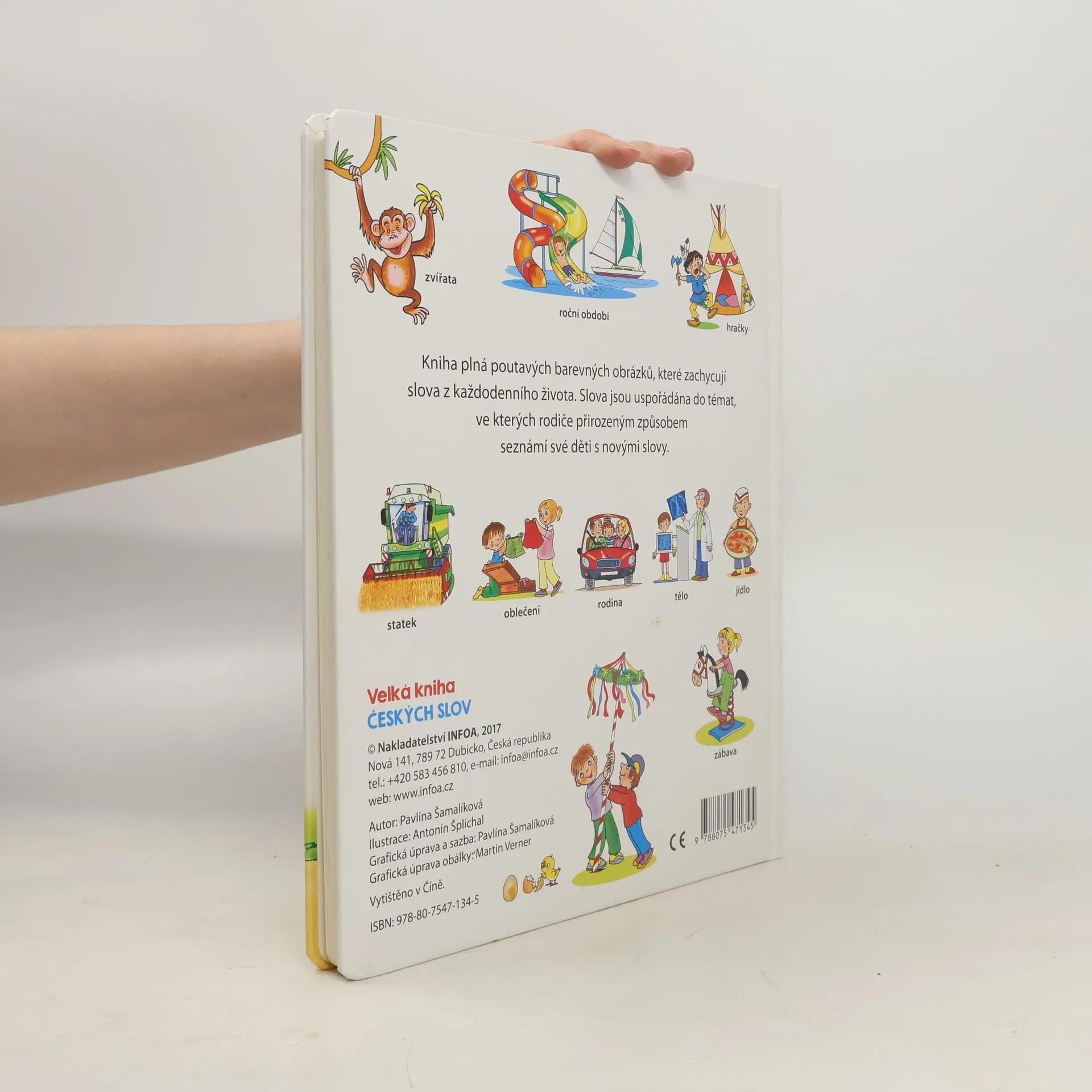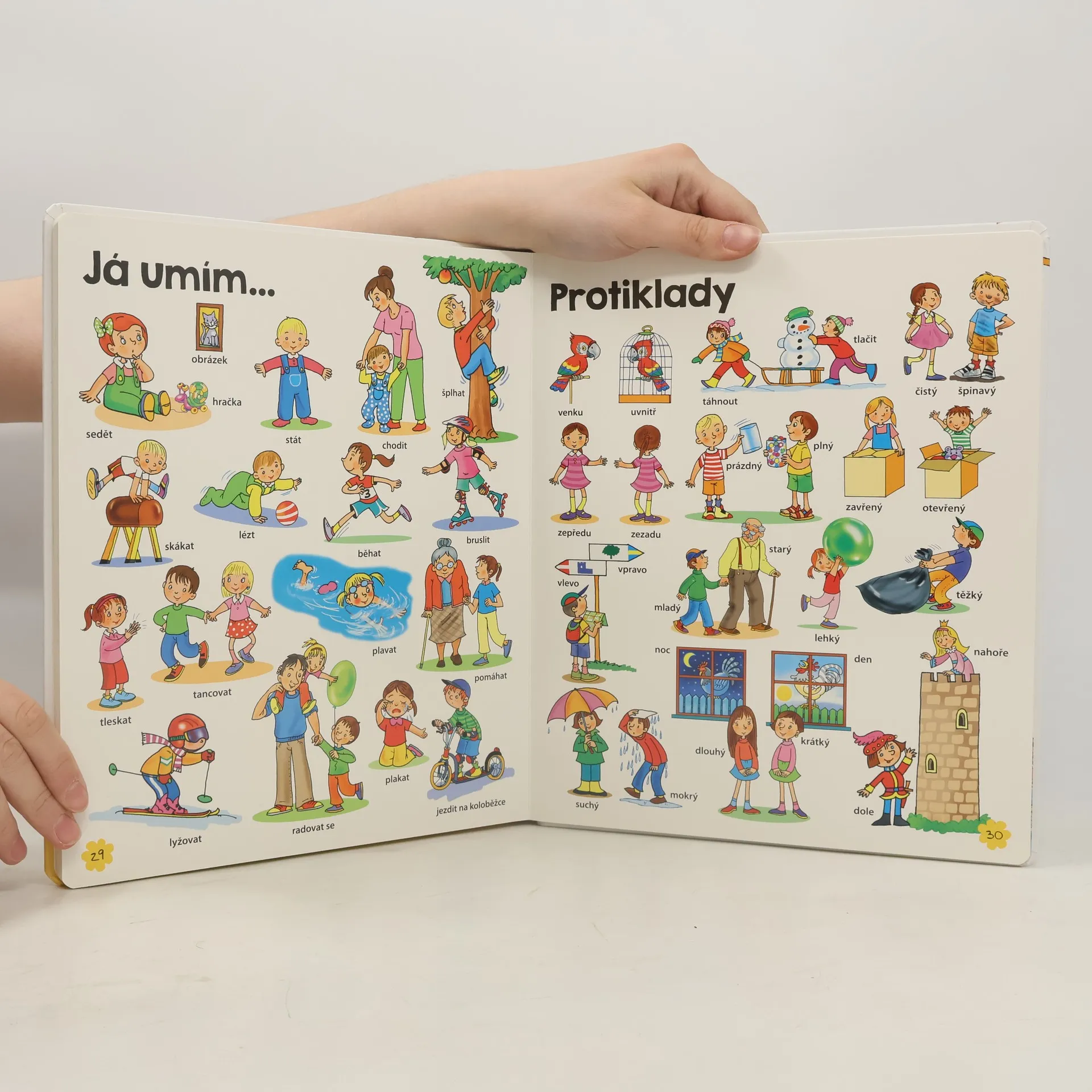 Kniha plná barevných obrázku, které zachycují slova z každodenního života. Slova jsou uspořádána do témat, ve kterých rodiče přirozeným způsobem seznámí své děti s novými slovy.