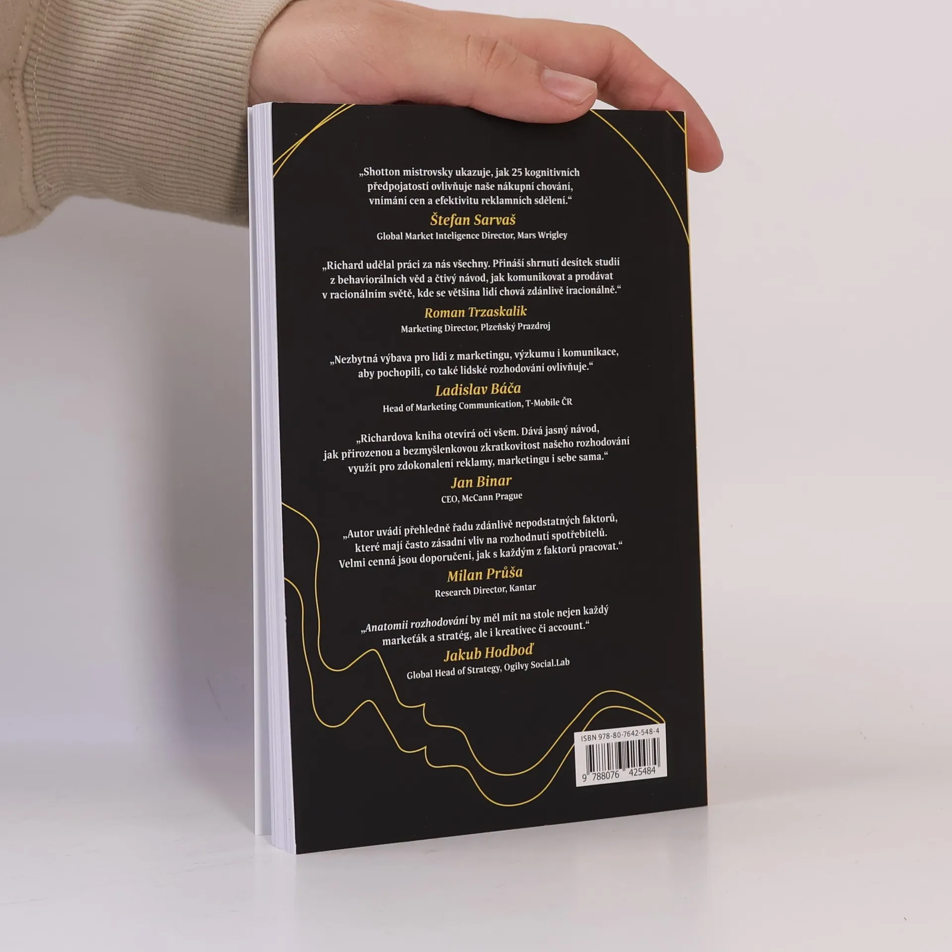 Než můžete začít ovlivňovat něčí rozhodování, je potřeba porozumět tomu, co k němu vede. Richard Shotton se ve své knize věnuje tomu, jak typicky rozhodovací proces probíhá, ať už se jedná o triviální rozhodování o tom, co si dáme k jídlu, nebo o životní rozhodování, jako například změnu práce. Zkoumá, jak je naše chování ovlivňováno psychologickými zkratkami, které nazývá zkreslením, a svoje poznatky prezentuje v kontextu možného použití těchto zkratek při tvorbě efektivní marketingové kampaně. Využívá při tom důkazy z akademického prostředí i z praxe marketingového oboru a vychází také z vlastních experimentů. Každou kapitolu ilustruje bohatou sadou příkladů, které prakticky znázorňují použití daného zkreslení v praxi. Kniha je stručná a výstižná - neutápí se ve složitých formulacích a suché vědecké terminologii, naopak se snaží být srozumitelná pro každého.