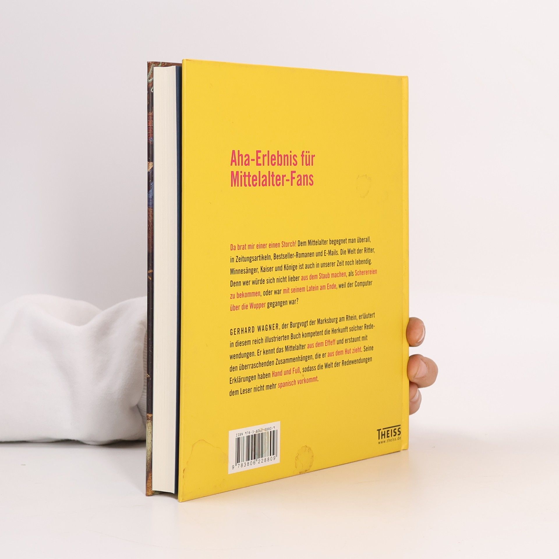 Da brat mir einer einen Storch! Dem Mittelalter begegnet man überall, in Zeitungsartikeln, Bestseller-Romanen und E-Mails. Die Welt der Ritter, Minnesänger, Kaiser und Könige ist auch in unserer Zeit noch lebendig. Denn wer würde sich nicht lieber aus dem Staub machen, als Scherereien zu bekommen, oder ist mit seinem Latein am Ende, weil der Computer über die Wupper gegangen ist? Gerhard Wagner, Burgvogt der Marksburg am Rhein, hat 250 solcher heute noch gebräuchlichen Redewendungen gesammelt und erläutert in diesem reich illustrierten Buch so kompetent wie unterhaltsam deren Herkunft. Der Leser kann über das Register gezielt nachschlagen oder sich beim Schmökern auf die Bauernhöfe, Burgen und Turnierplatze des Mittelalters entführen lassen. Der Autor kennt das Mittelalter aus dem Effeff und erstaunt mit den überraschenden Zusammenhängen, die er aus dem Hut zieht. Seine Erklärungen haben Hand und Fuß, sodass die Welt der Redewendungen dem Leser nicht mehr spanisch vorkommt.