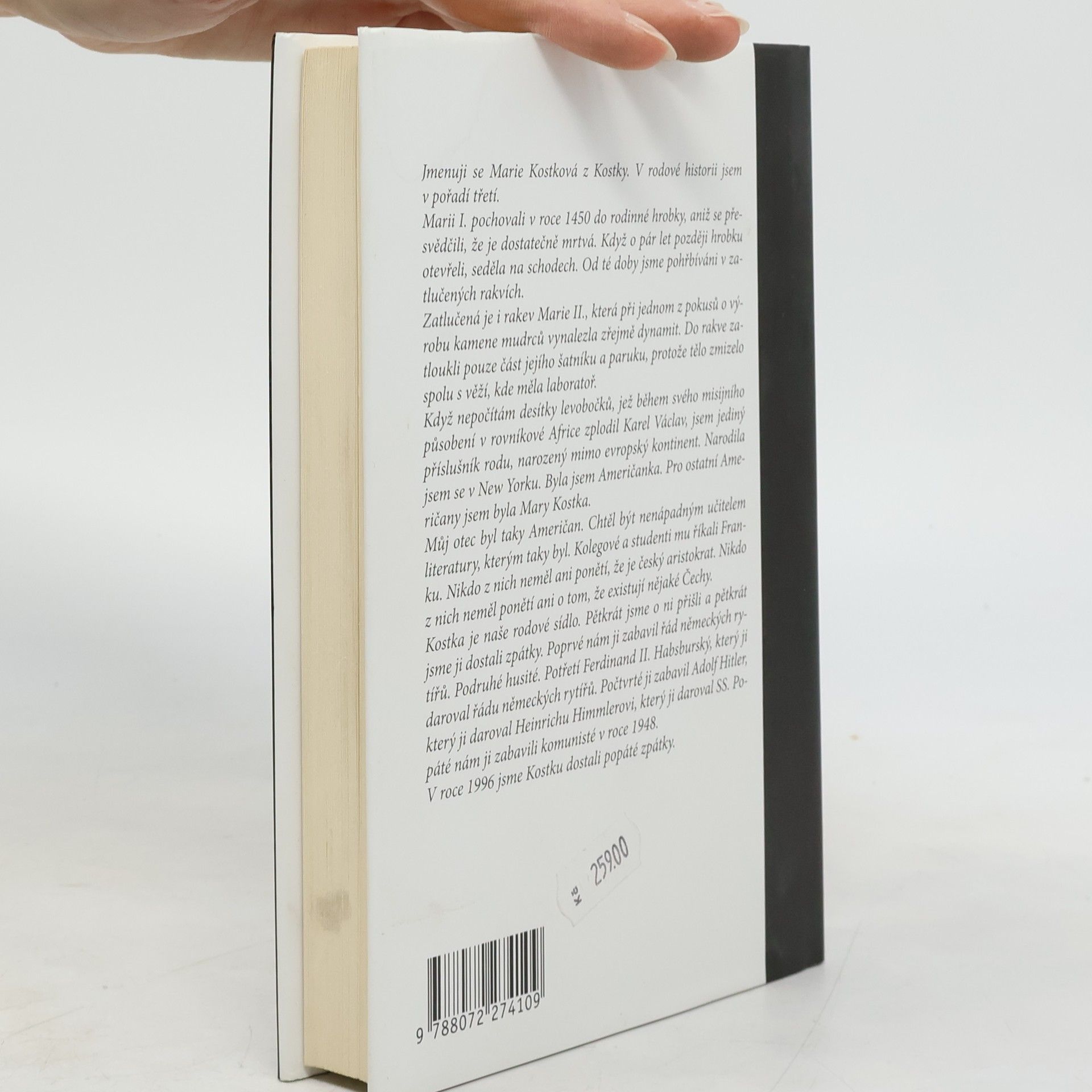 Po tragické smrti princezny Diany se ruší repríza rozverné historické revue s Helenkou Vondráčkovou a Heinrichem Himmlerem a na Kostce je vyhlášen smutek. V zámecké kapli vzniká pietní místo s kondolenční knihou a z oken visí černé prapory. Aristokratka Marie využívá příležitosti a odjíždí na hájovnu za Maxem. Není ovšem jasné, jestli nejedná v pominutí smyslů. Na zámek dorazí několik osob, které rozpoutají vlnu zločinnosti. Podaří se Marii celou tu zašmodrchanou situaci rozplést? Tento titul je již čtvrtým ze série mimořádně úspěšných humoristických románů o „poslední aristokratce“.