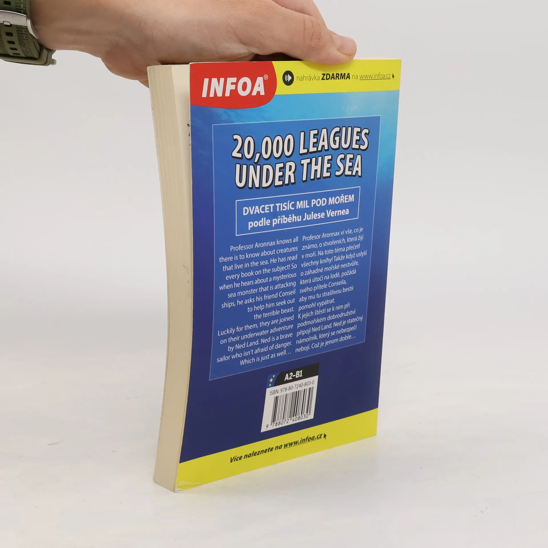 Jazyková úroveň: Mírně pokročilí. 20 000 mil pod mořem podle příběhu Julese Vernea. Profesor Arronax ví vše, co je známo, o stvořeních, která žijí v moři. Na toto téma přečetl všechny knihy! Takže když uslyší o záhadné mořské nestvůře, která útočí na lodě, požádá svého přítele Conseila, aby mu tu strašlivou bestii pomohl vypátrat. K jejich štěstí se k nim při podmořském dobrodružství připojí Ned Land. Ned je statečný námořník, který se nebezpečí nebojí. Což je jenom dobře…