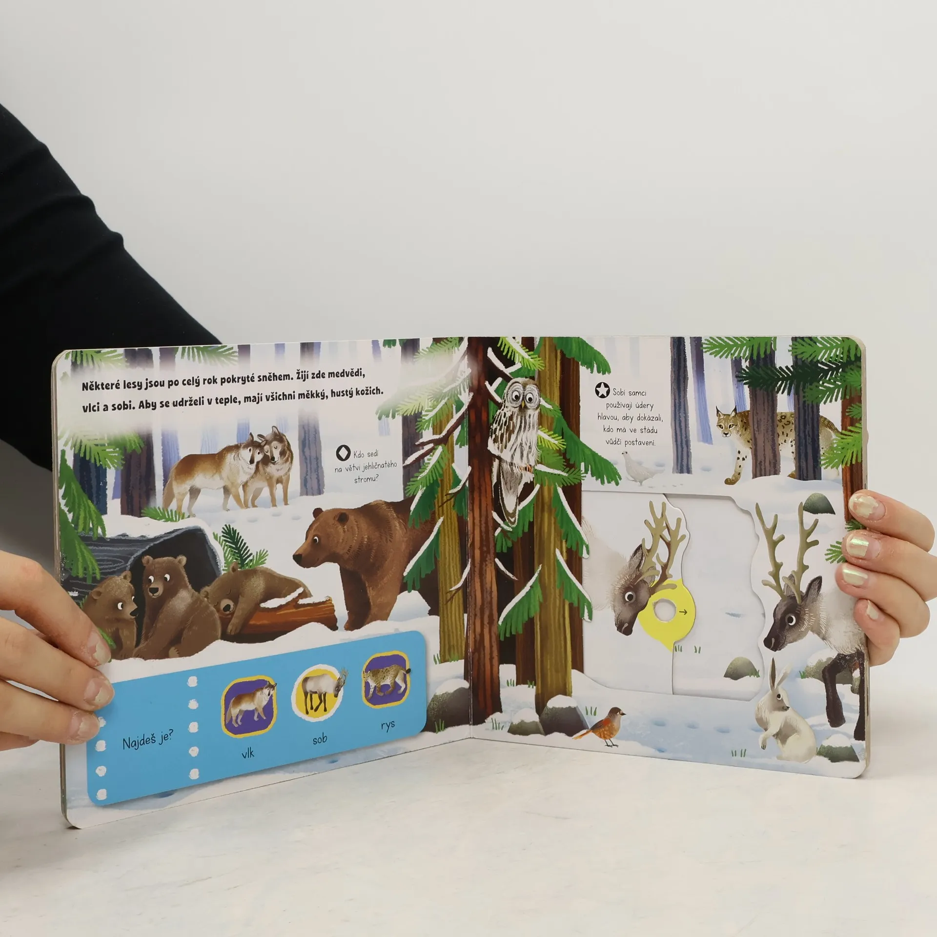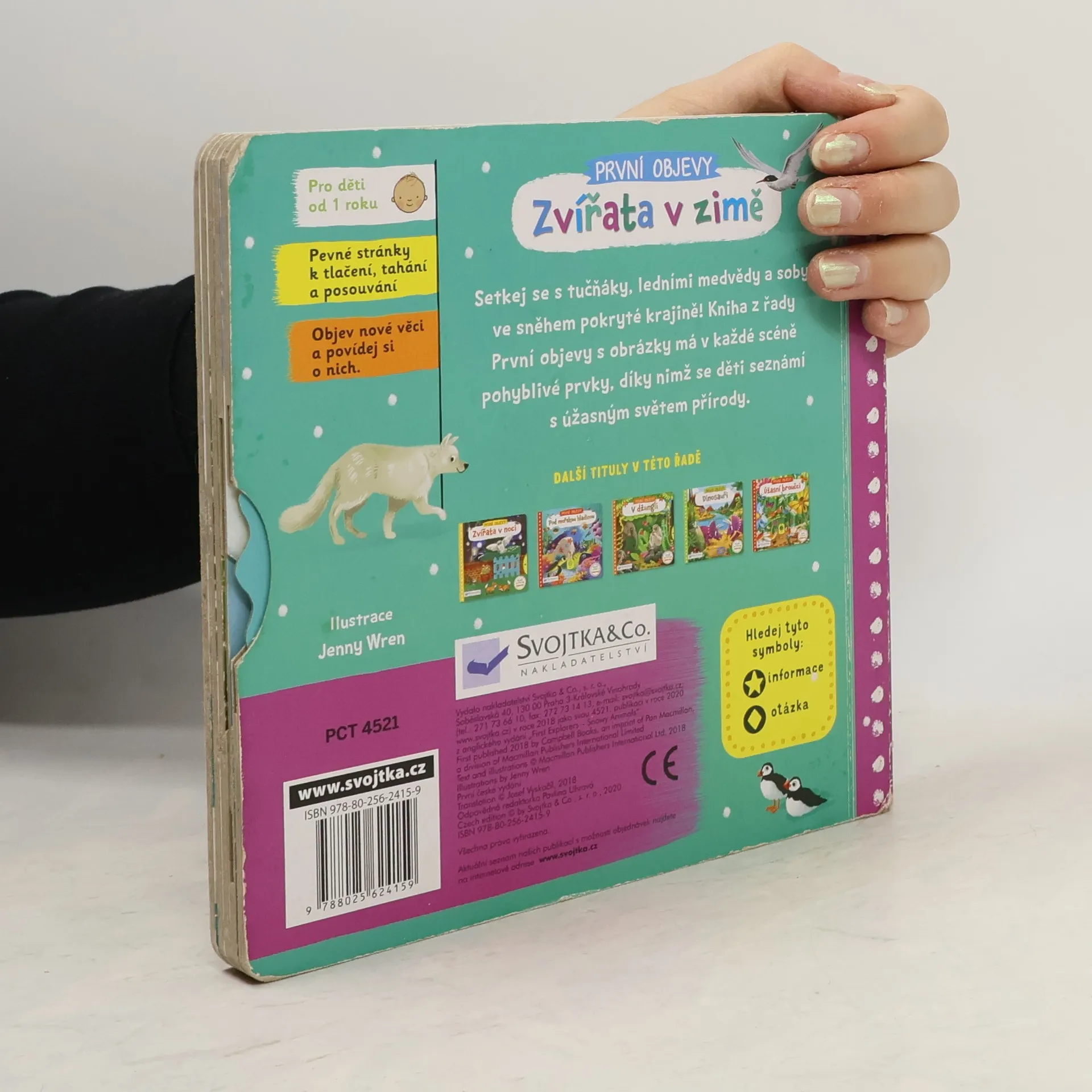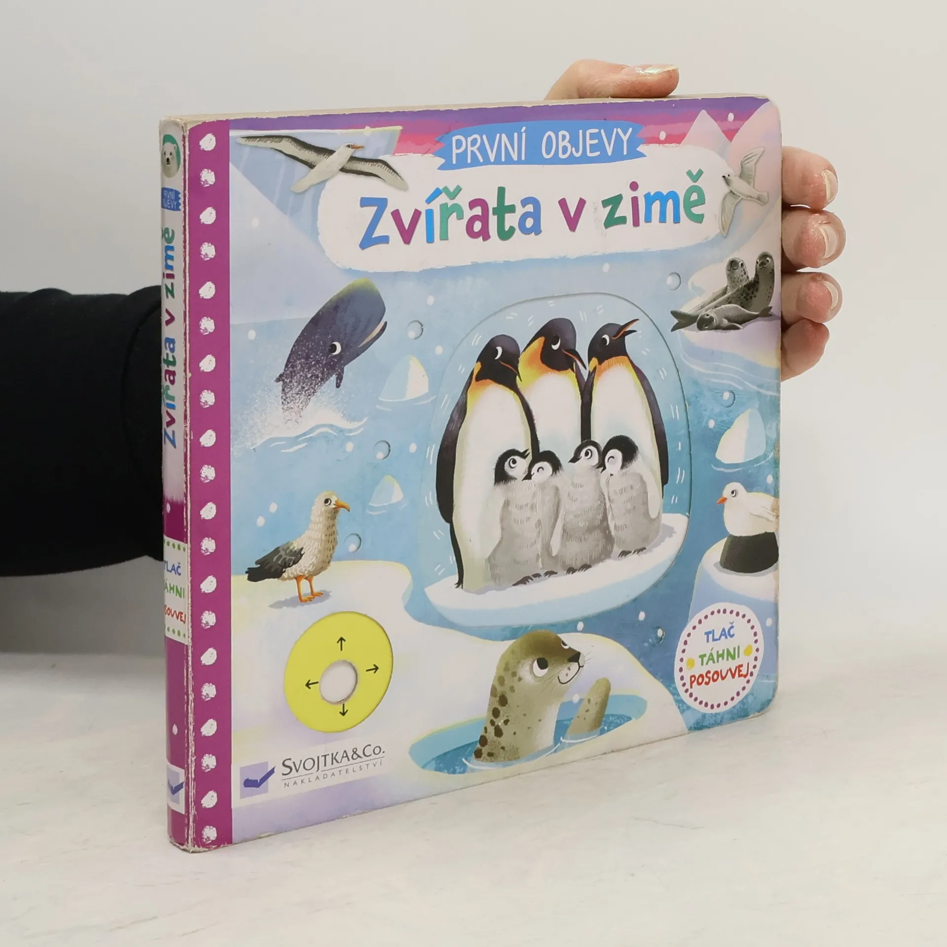 Projdi se zasněženou krajinou v horách i v lese, navštiv zvířátka na severním i jižním pólu. Objevíš huňaté lední medvědy, velryby, pasoucí se losy nebo irbise, jak číhá na svou kořist. Otevři knížku a seznam se s nimi! Kniha z řady První objevy s obrázky má v každé scéně pohyblivé prvky, díky nimž se děti seznámí s úžasným světem přírody a zároveň si procvičí jemnou motoriku.