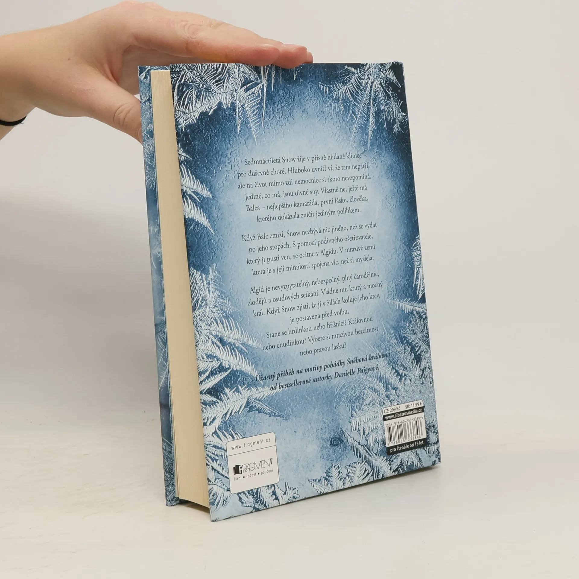Sedmnáctiletá Snow žije v přísně hlídané klinice pro duševně choré. Hluboko uvnitř ví, že tam nepatří, ale na život mimo zdi nemocnice si skoro nevzpomíná. Jediné, co má, jsou divné sny. Vlastně ne, ještě má Balea – nejlepšího kamaráda, první lásku, člověka, kterého dokázala zničit jediným polibkem. Když Bale zmizí, Snow nezbývá nic jiného, než se vydat po jeho stopách. S pomocí podivného ošetřovatele, který ji pustí ven, se ocitne v Algidu. V mrazivé zemi, která je s její minulostí spojena víc, než si myslela. Algid je nevyzpytatelný, nebezpečný, plný čarodějnic, zlodějů a osudových setkání. Vládne mu krutý a mocný král. Když Snow zjistí, že jí v žilách koluje jeho krev, je postavena před volbu. Stane se hrdinkou nebo hříšnicí? Královnou nebo chudinkou? Vybere si mrazivou bezcitnost nebo pravou lásku? Úžasný příběh na motivy pohádky Sněhová královna od bestsellerové autorky Danielle Paigeové.