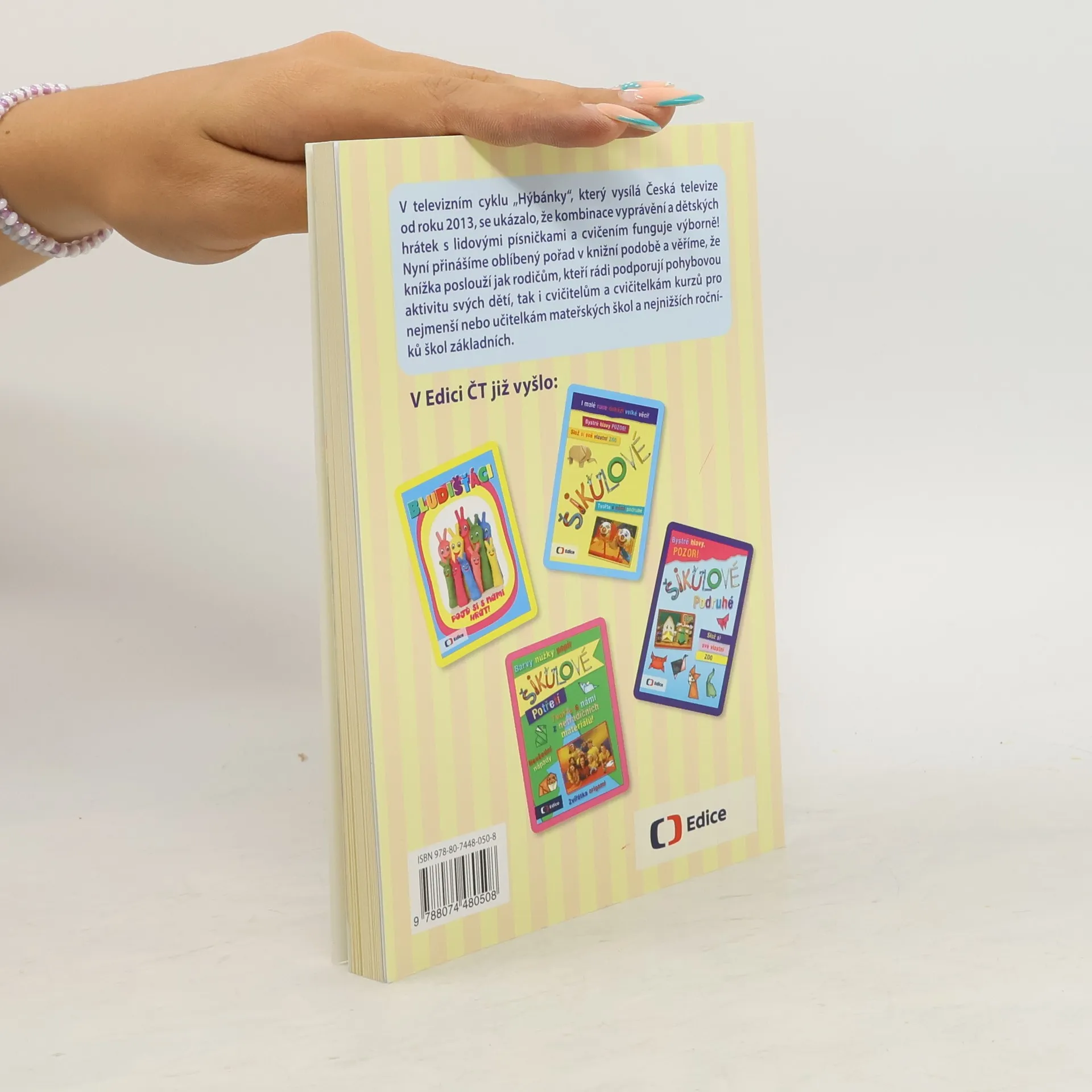 V televizním cyklu „Hýbánky“, který vysílá Česká televize od roku 2013, se ukázalo, že kombinace vyprávění a dětských hrátek s lidovými písničkami a cvičením funguje výborně! Nyní přinášíme oblíbený pořad v knižní podobě a věříme, že knížka poslouží jak rodičům, kteří rádi podporují pohybovou aktivitu svých dětí, tak i cvičitelům a cvičitelkám kurzů pro nejmenší nebo učitelkám mateřských škol a nejnižších ročníků škol základních.