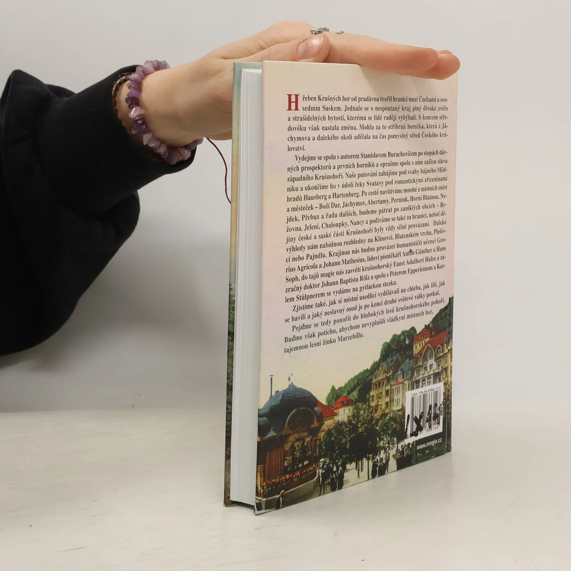 Hřeben Krušných hor od pradávna tvořil hranici mezi Čechami a Saskem, byl to kraj plný divoké zvěře a strašidelných bytostí, kterému se lidé raději vyhýbali. S koncem středověku však nastala změna, způsobená stříbrnou horečkou, která učinila z Jáchymova pomyslný střed Českého království. Autor Stanislav Burachovič nás zve na cestu po stopách dávných prospektorů a prvních horníků, abychom objevili zašlou slávu západního Krušnohoří. Naše putování začíná pod svahy Mědníku a končí v údolí řeky Svatavy pod romantickými zříceninami hradů Hausberg a Hartenberg. Navštívíme města jako Boží Dar, Jáchymov, Abertamy, Pernink, Horní Blatnou a Nejdek, a prozkoumáme zaniklé obce jako Rýžovna a Jelení. Dějiny české a saské části Krušnohoří jsou silně provázané, což nás zavede i za hranice. Rozhledny na Klínovci, Blatenském vrchu a Plešivci nám nabídnou daleké výhledy. Na cestě nás provázejí historické postavy, lidoví písničkáři a tajemní léčitelé. Objevíme, jak místní obyvatelé žili, jak se bavili a jaký osud je potkal po druhé světové válce. Ponořme se do hlubokých lesů Krušných hor, ale buďme potichu, abychom nevyplašili vládkyni místních hor, tajemnou lesní žínku Marzebillu.