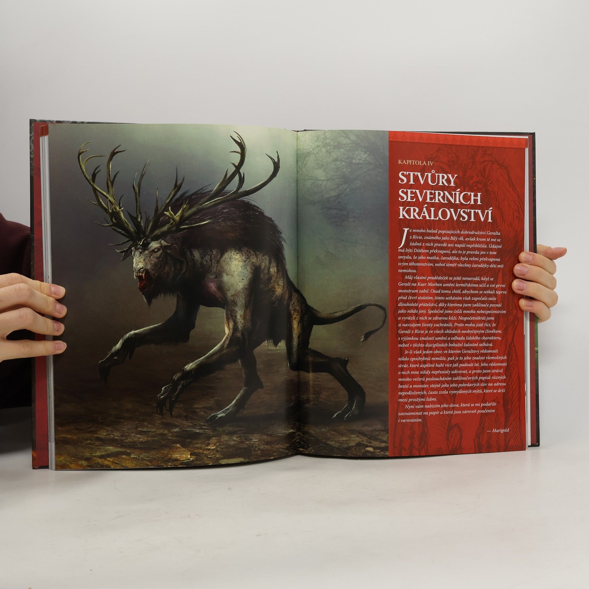 CD PROJEKT RED & DARK HORSE. Ponořte se hluboko do světa monster a těch, kdo je loví. Geralt a jeho nejvěrnější společníci vás provedou fascinujícím světem Zaklínače. Přečtěte si zasvěcené popisy mnoha úžasných míst; nebezpečných stvůr, které je obývají, a smrtících zbraní, které skoncovaly s jejich řáděním. Tato úchvatná, bohatě ilustrovaná kniha je nezbytným průvodcem série počítačových her Zaklínač a naprostá nutnost pro všechny příznivce temné a epické fantasy. (Sběratelská edice sto padesáti kusů, v dárkovém boxu, vázáno v umělé kůži).