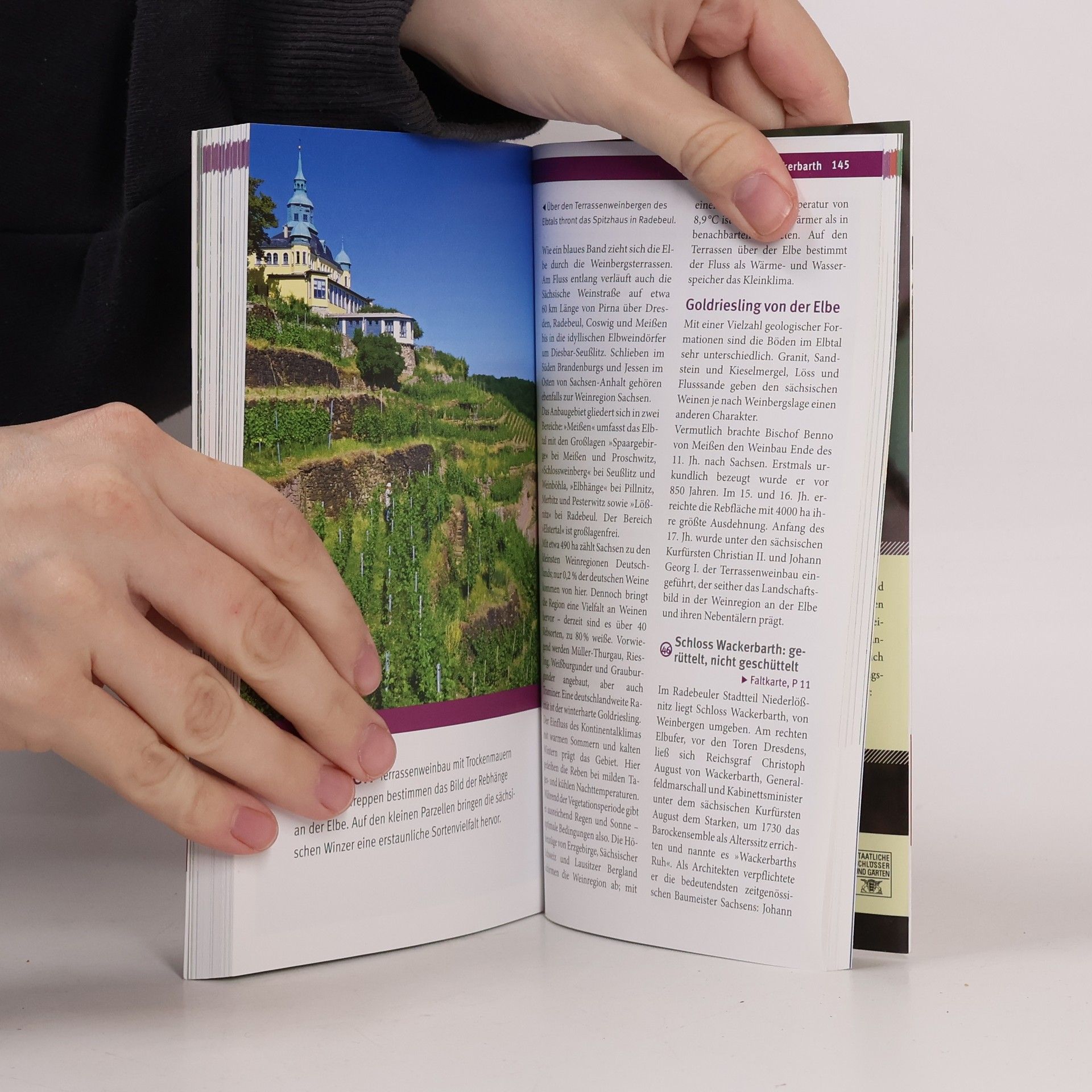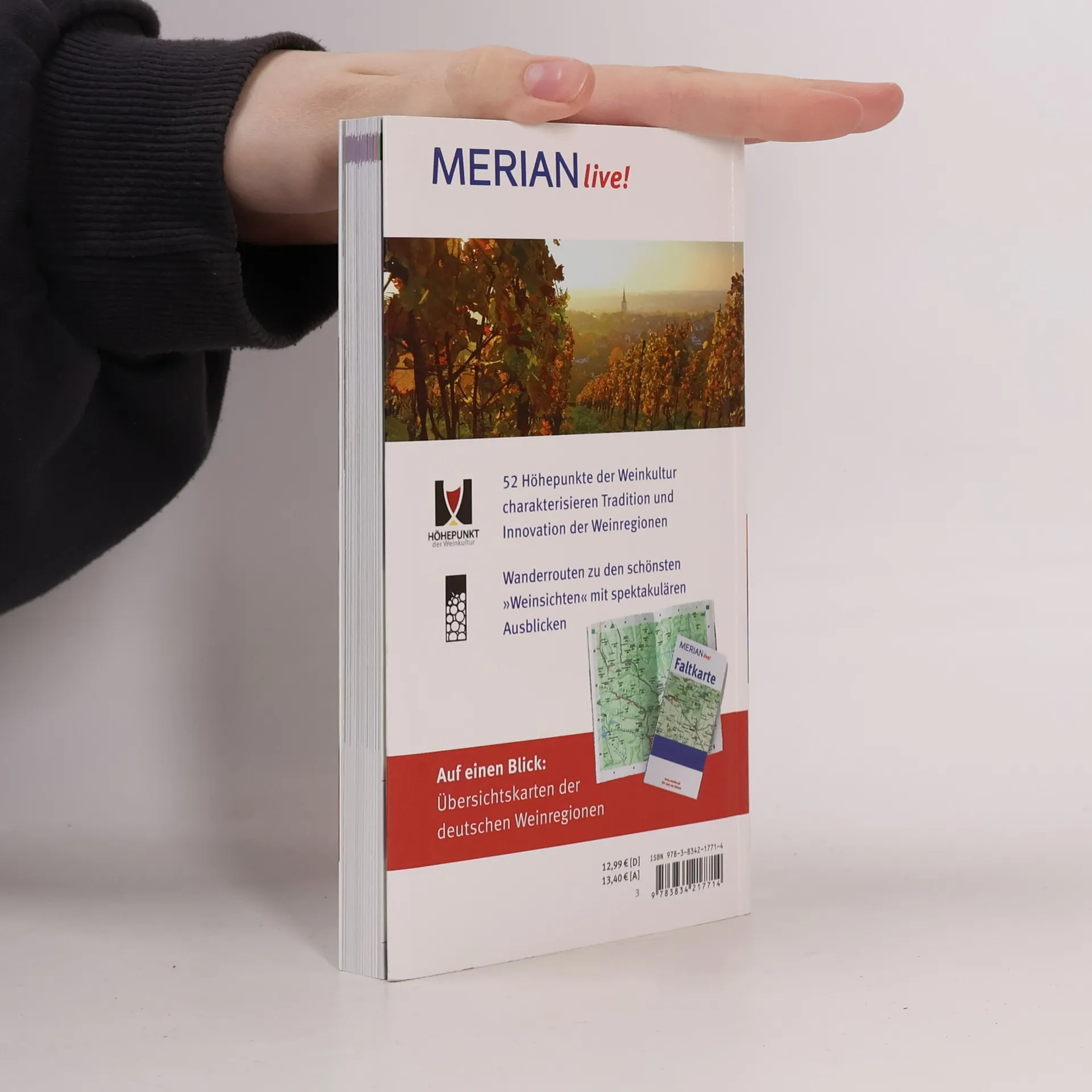 Der mit dem Deutschen Weininstitut herausgegebene MERIAN live!-Band »Genusstouren durch die deutschen Weinregionen« stellt die 13 Anbaugebiete und ihre Weine vor. Im Mittelpunkt stehen 52 Höhepunkte der Weinkultur - herausragende Kulturdenkmäler, die den Weinbau, seine Geschichte und Gegenwart repräsentieren. Daneben werden auch die gekürten »schönsten Weinsichten« beschrieben, die zur Erkundung der Regionen einladen und mit spektakulären Ausblicken auf Flusstäler, Rebhänge und Weinorte belohnen. Ergänzend gibt es zu jeder Region Hinweise auf Sehenswertes in der Umgebung, Wander- oder Radtouren, Feste und Events, Restaurants und Weingüter. Nützliche Hintergrundinformationen zu Rebsorten, Qualitätsstufen und Geschmacksrichtungen deutscher Weine sowie ein ausführliches Weinglossar vervollständigen den Überblick. ca. 110 Farbfotos, MERIAN-Tipps und Extra-Karte zum Herausnehmen