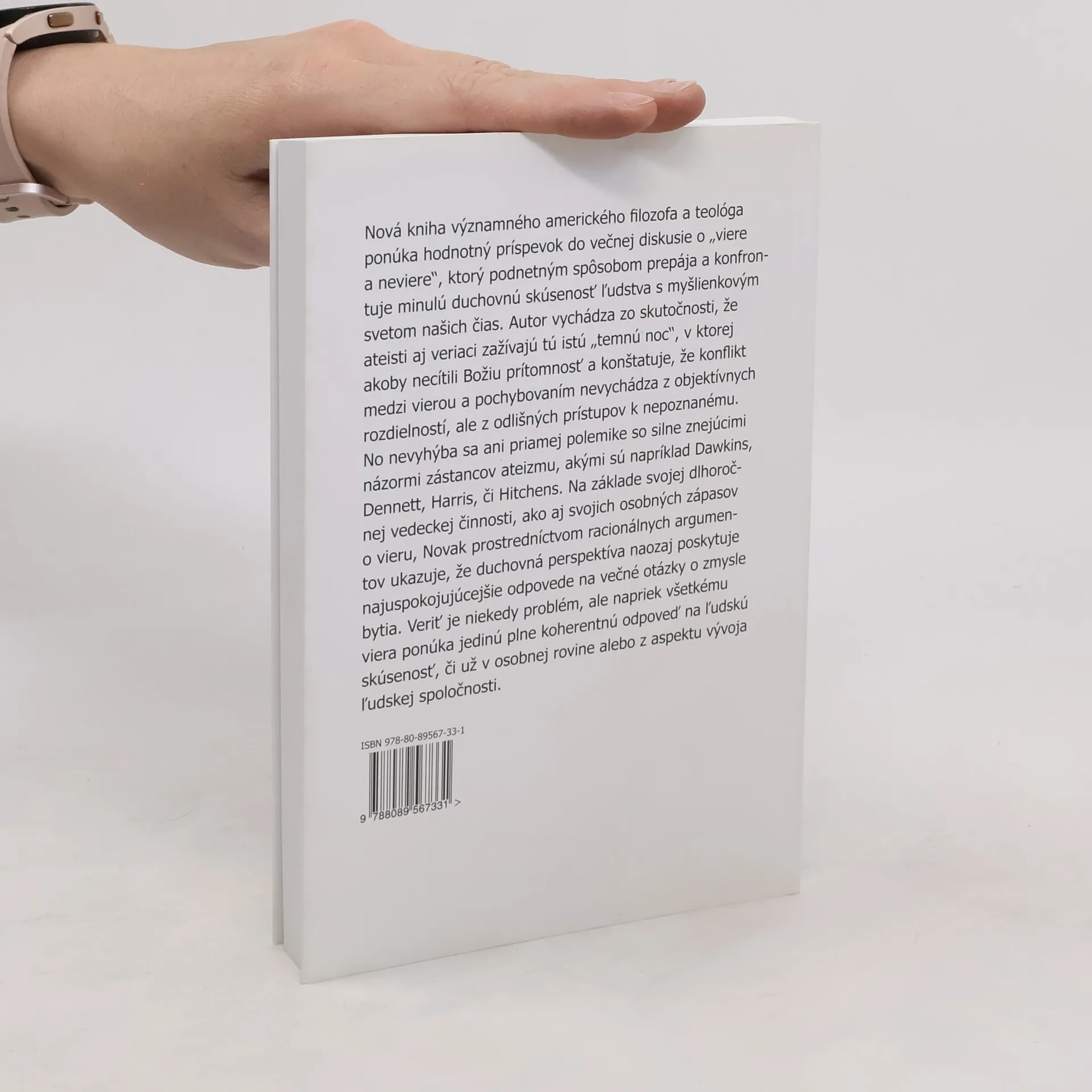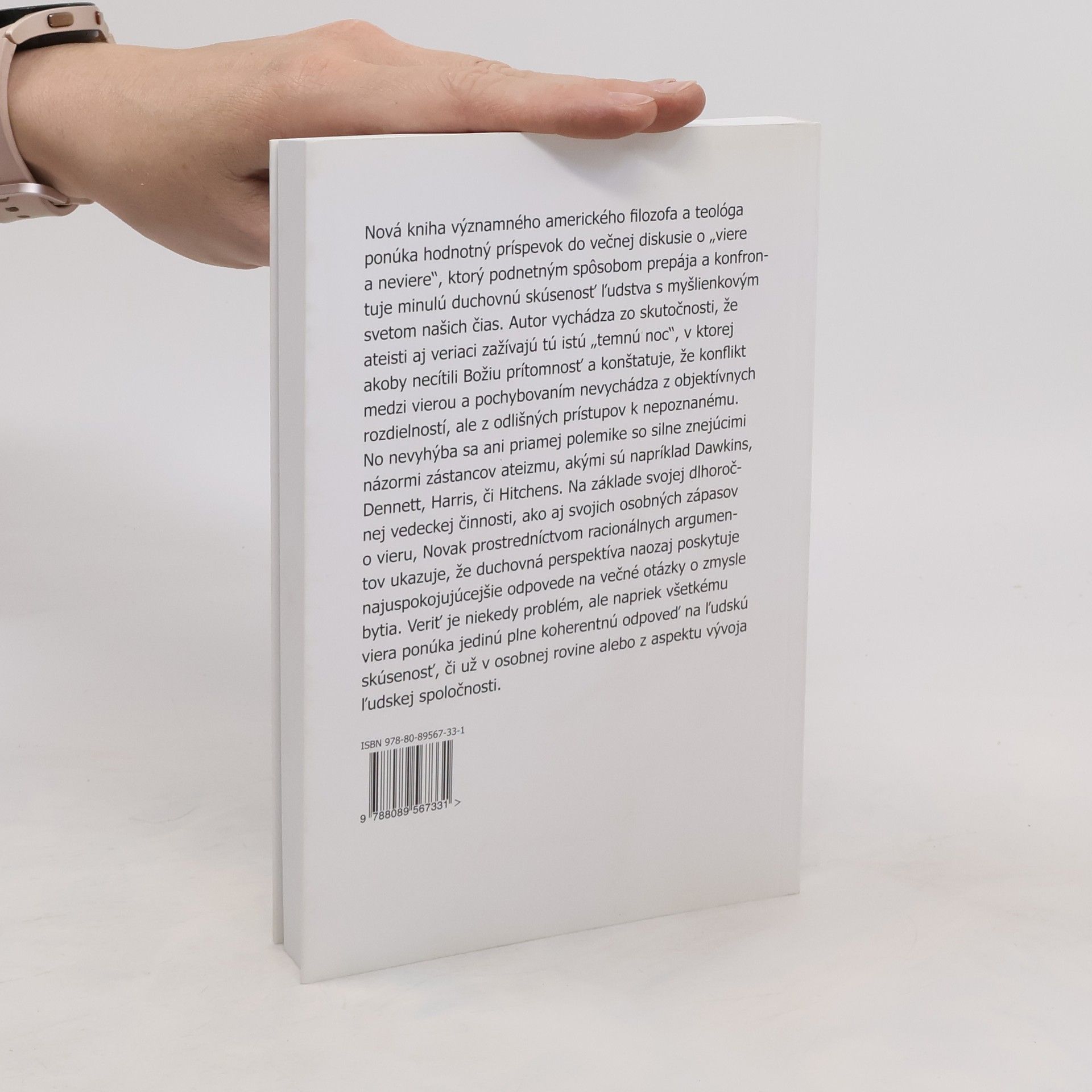 Nová kniha významného amerického filozofa a teológa ponúka pozoruhodný príspevok do večnej diskusie o „viere a neviere“, v ktorom možno nájsť širokú škálu podnetov inšpirovaných duchovnou skúsenosťou ľudstva a jej konfrontáciou s myšlienkovým svetom značnej časti našich súčasníkov. Autor vychádza zo skutočnosti, že ateisti aj veriaci zažívajú tú istú „temnú noc“, v ktorej akoby necítili Božiu prítomnosť a konštatuje, že konflikt medzi vierou a pochybovaním nevychádza z objektívnych rozdielností, ale z odlišných prístupov k nepoznanému. No nevyhýba sa ani priamej polemike so silne znejúcimi názormi zástancov ateizmu, akými sú napríklad Dawkins, Dennett, Harris, či Hitchens. Na základe svojej dlhoročnej vedeckej činnosti, ako aj svojich osobných zápasov o vieru, Novak prostredníctvom racionálnych argumentov ukazuje, že duchovná perspektíva naozaj poskytuje najuspokojujúcejšie odpovede na večné otázky o zmysle bytia. Veriť je niekedy problém, ale napriek všetkému viera ponúka jedinú plne koherentnú odpoveď na ľudskú skúsenosť, či už v osobnej rovine alebo z aspektu vývoja ľudskej spoločnosti.