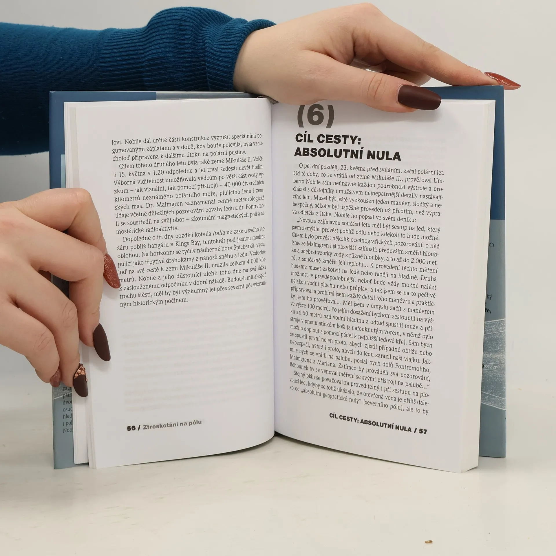 V roce 1928 se rozhodl letecký konstruktér Umberto Nobile, dva roky po úspěšném přeletu severního pólu, k nové cestě v řiditelné vzducholodi, kde chtěl vysadit výzkumníky a poté je dopravit zpět na základnu. Při zpátečním letu však vzducholoď ztroskotala a ti, kdo pád přežili, uvízli na ledové kře. Jejich zmizení podnítilo dosud nejrozsáhlejší záchranou akci, při níž vedle jiných zahynul i R. Amundsen. Autor líčí téměř dvouměsíční boj trosečníků o přežití, záchranné akce i politické intriky italské vlády.